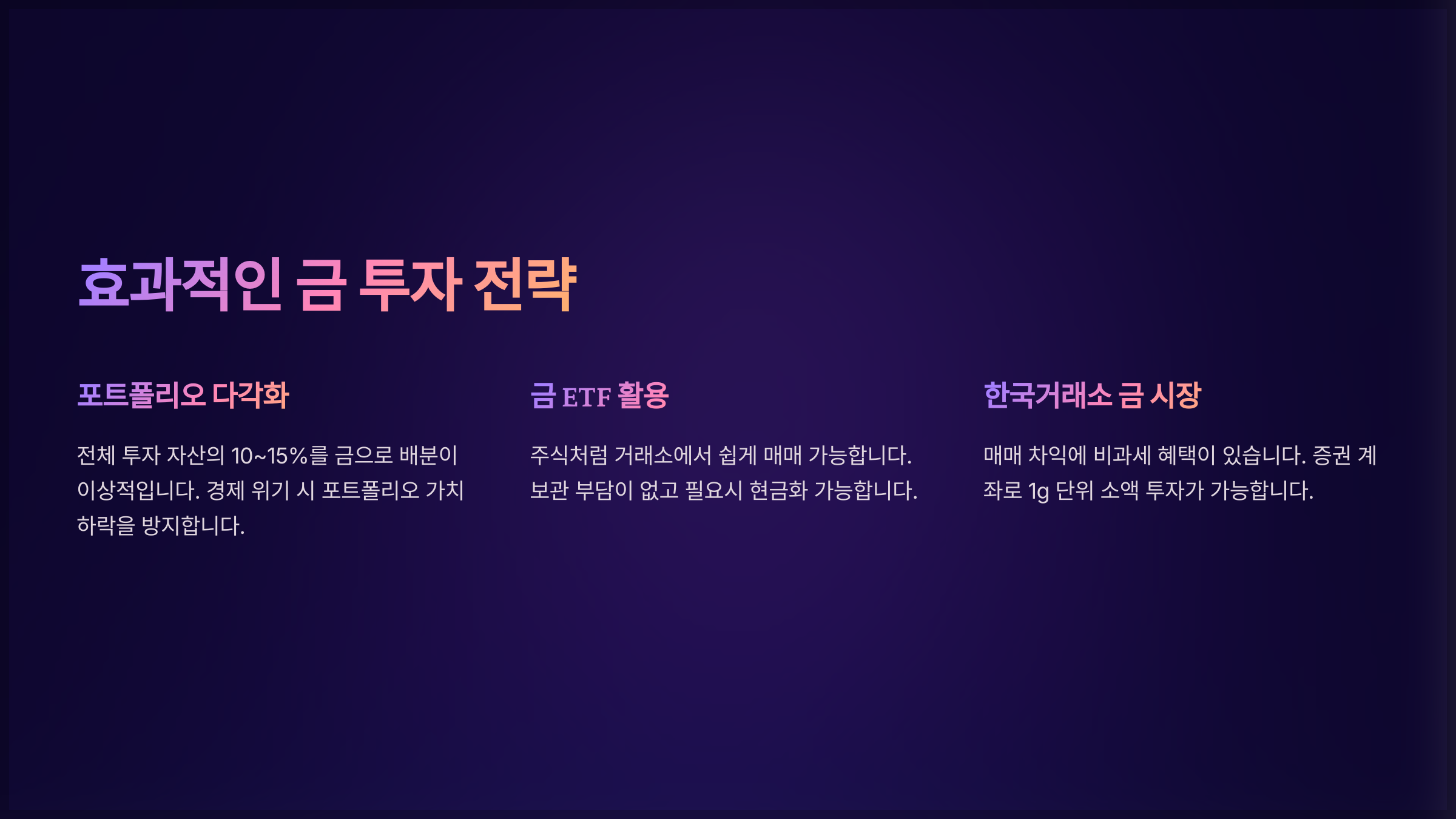 무작정 금을 사는 것이 아니라, 체계적인 투자 전략을 세우고 실행하는 것이 성공의 핵심이다.