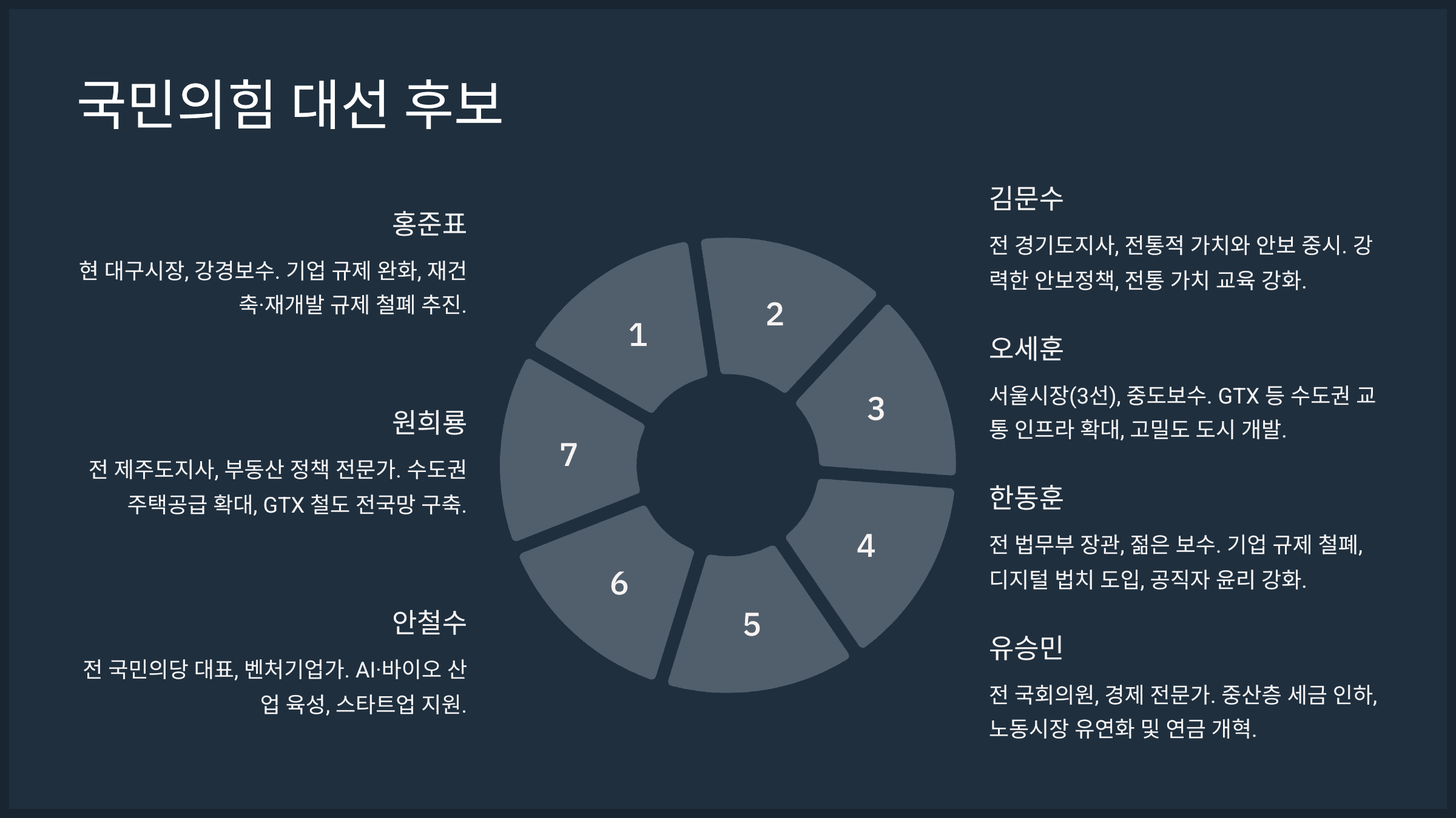 대통령 대선 후보 프로필과 공약 한눈에 보기입니다. 2025년 조기 대선을 앞두고 대한민국은 경기 침체, 부동산 불안정, 청년 취업난 등 복잡한 문제들 속에서 중요한 선택의 기로에 섰습니다.