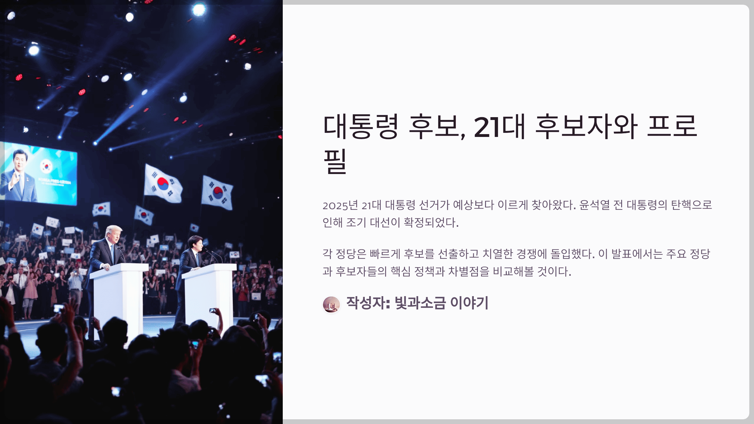 대통령 후보, 21대 후보자와 프로필입니다. 2025년 21대 대통령 선거가 예상보다 이르게 찾아왔다. 윤석열 전 대통령의 탄핵으로 인해 조기 대선이 확정되면서, 각 정당은 빠르게 후보를 선출하고 치열한 경쟁에 돌입했다.