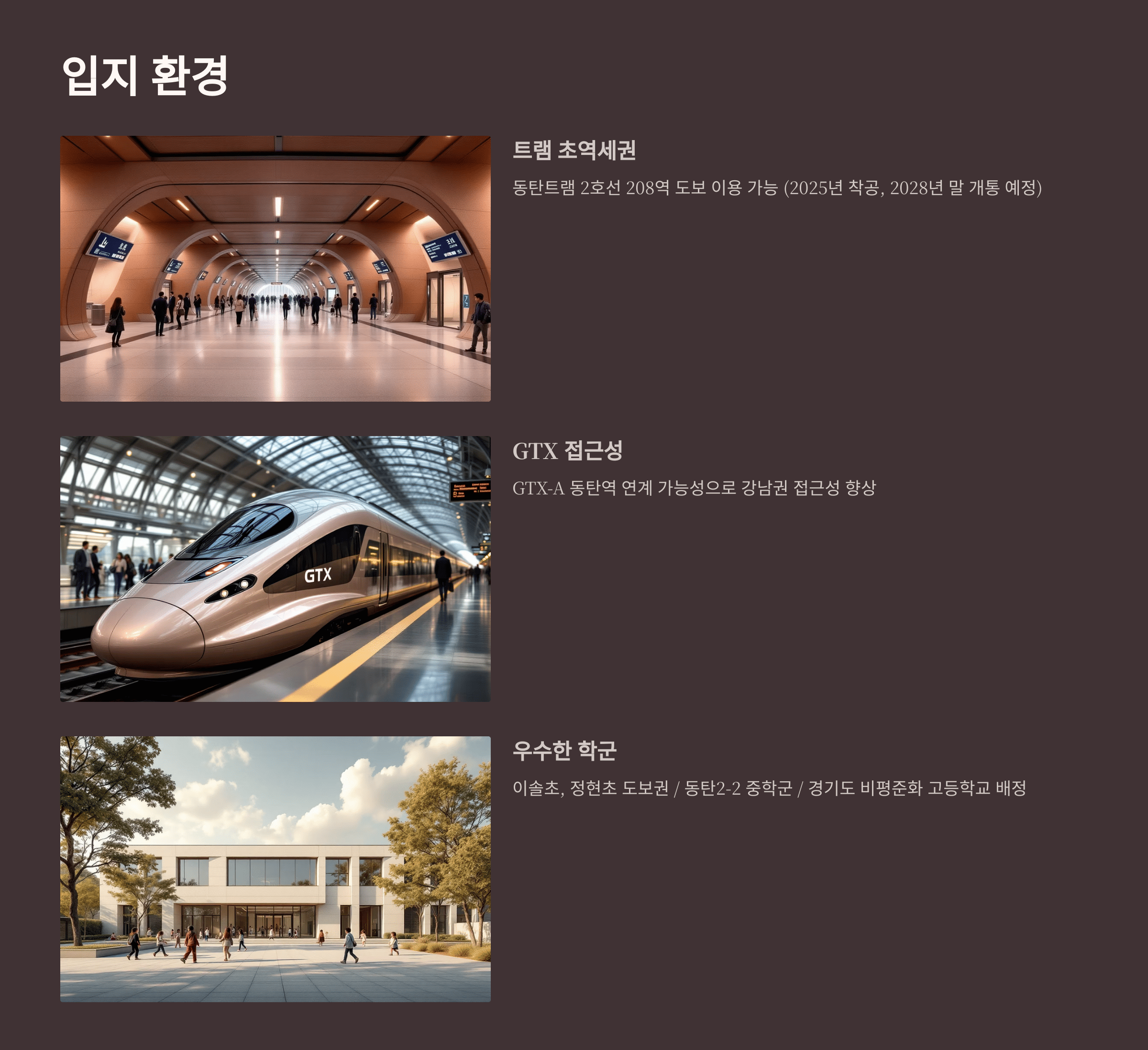 - 동탄트램 2호선 208역 도보 이용 가능 (2025년 착공, 2028년 말 개통 예정)