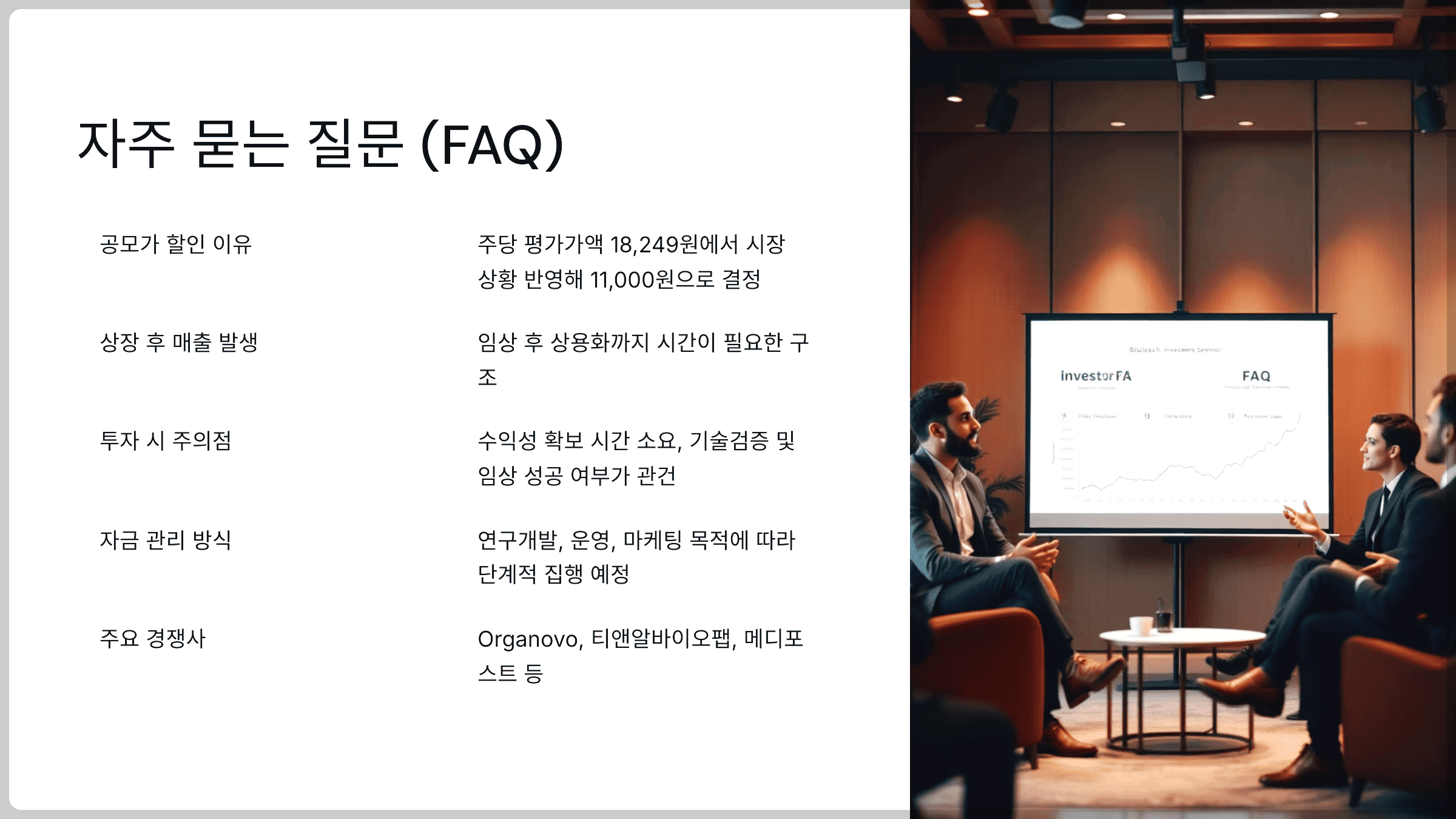 특히 3D 바이오프린팅과 AI 기반의 장기재생 플랫폼이라는 독자적인 기술을 앞세운 만큼, 이번 공모는 기술력과 미래 성장성에 대한 기대가 반영된 결과라고 볼 수 있습니다.