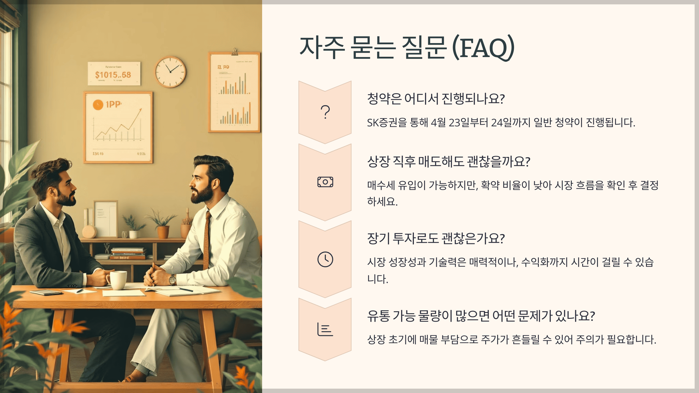| 단기 (~1개월) | 상장 직후 기술 기대감으로 급등 가능성 있으나, 유통물량 부담으로 하락 가능성도 함께 고려해야 합니다. |