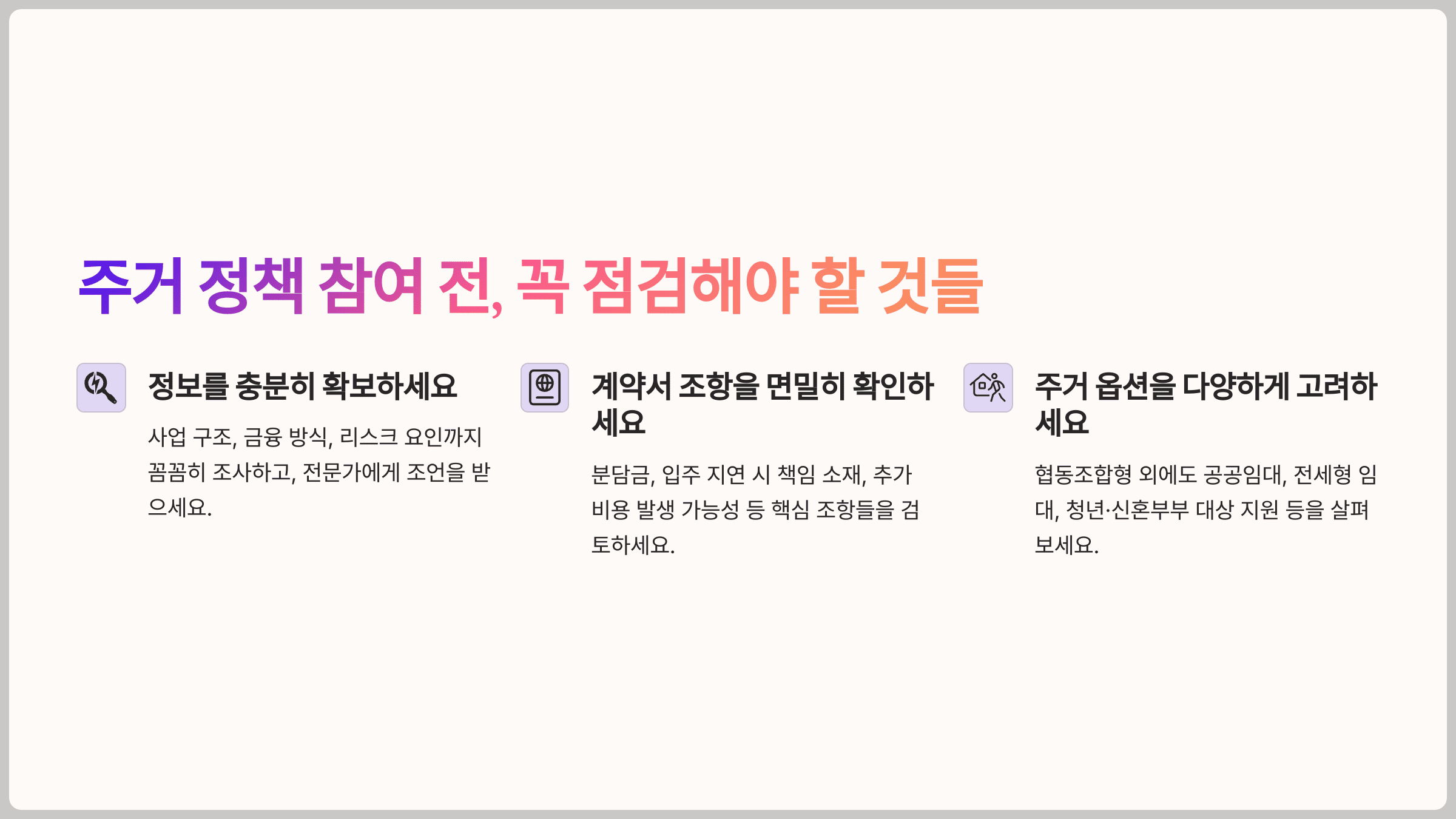 💡 주거 정책 참여 전, 꼭 점검해야 할 것들
