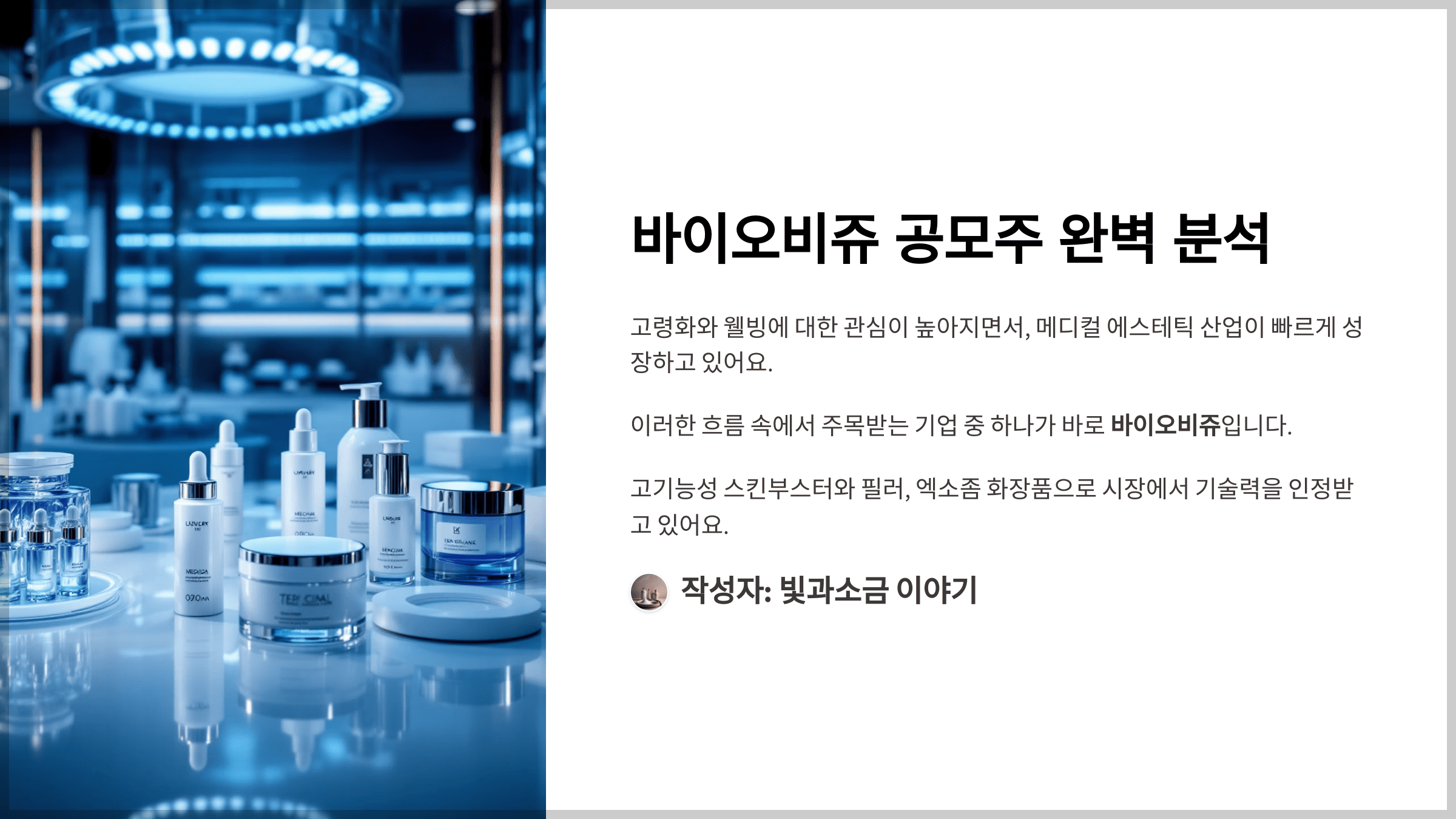 바이오비쥬 공모주 완벽 분석, 제품, 재무제표, 수요예측, 성장전망입니다. 고령화와 웰빙에 대한 관심이 높아지면서, 메디컬 에스테틱 산업이 빠르게 성장하고 있어요. 이러한 흐름 속에서 주목받는 기업 중 하나가 바로 바이오비쥬입니다.