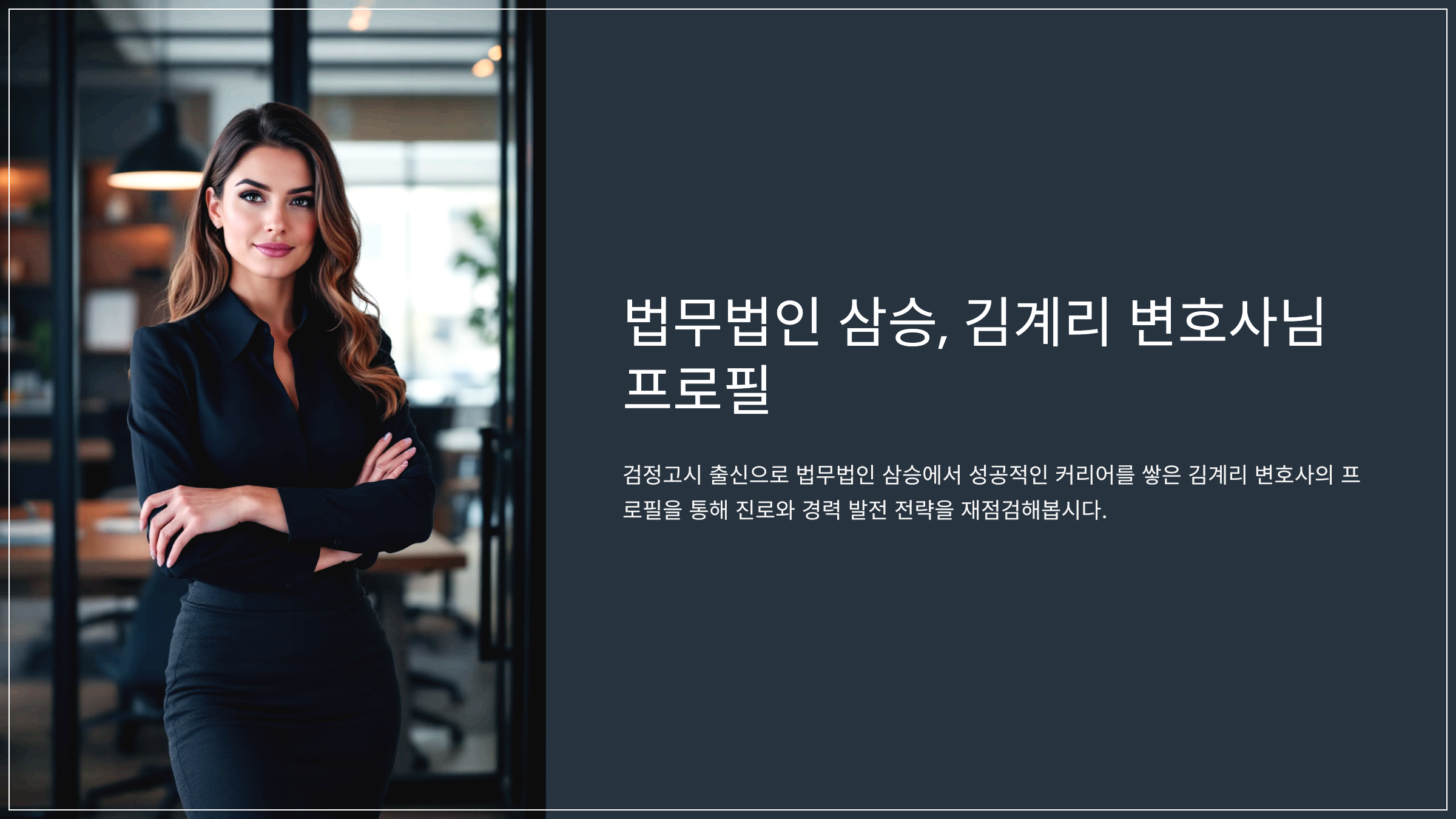 검정고시 출신의 어려움을 극복하고 법무법인 삼승에서 성공적인 커리어를 쌓은 김계리 변호사님의 프로필을 살펴보면, 스스로의 진로와 경력 발전을 위한 전략을 재점검할 기회가 마련된다. 이 글에서는 김계리 변호사님의 독창적인 교육 전략 📚, 법무법인 삼승 내에서의 차별화된 역할, 그리고 40대 법조인을 위한 체계적인 커리어 관리 방법을 상세하게 소개한다. 본 내용을 참고하여 각자의 상황에 맞는 성장 전략을 세우고, 미래 경력 설계에 도움이 되는 인사이트를 얻어보길 바란다.
