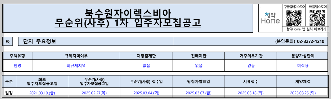 복수원자이렉스비아 관련 무순위 입주자모집공고문입니다.