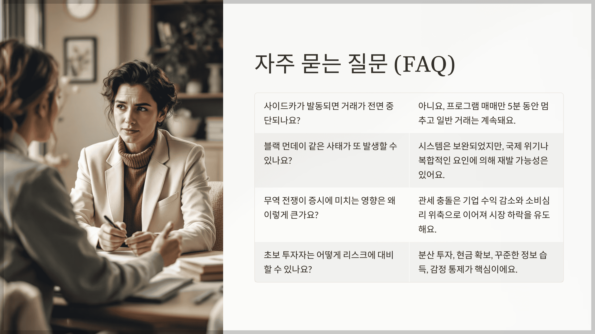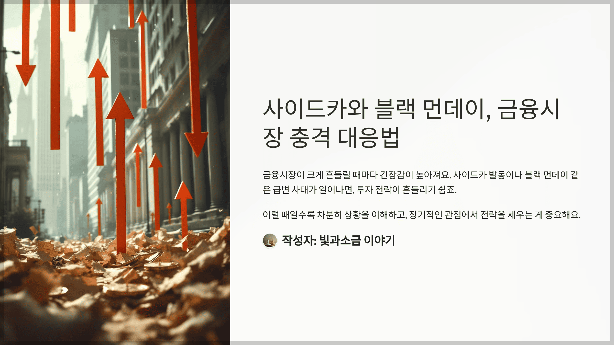 사이드카와 블랙 먼데이 같은 시장 충격은 앞으로도 계속 등장할 수 있어요. 하지만 그럴수록 준비된 사람은 위기 속에서 기회를 만들어내요.