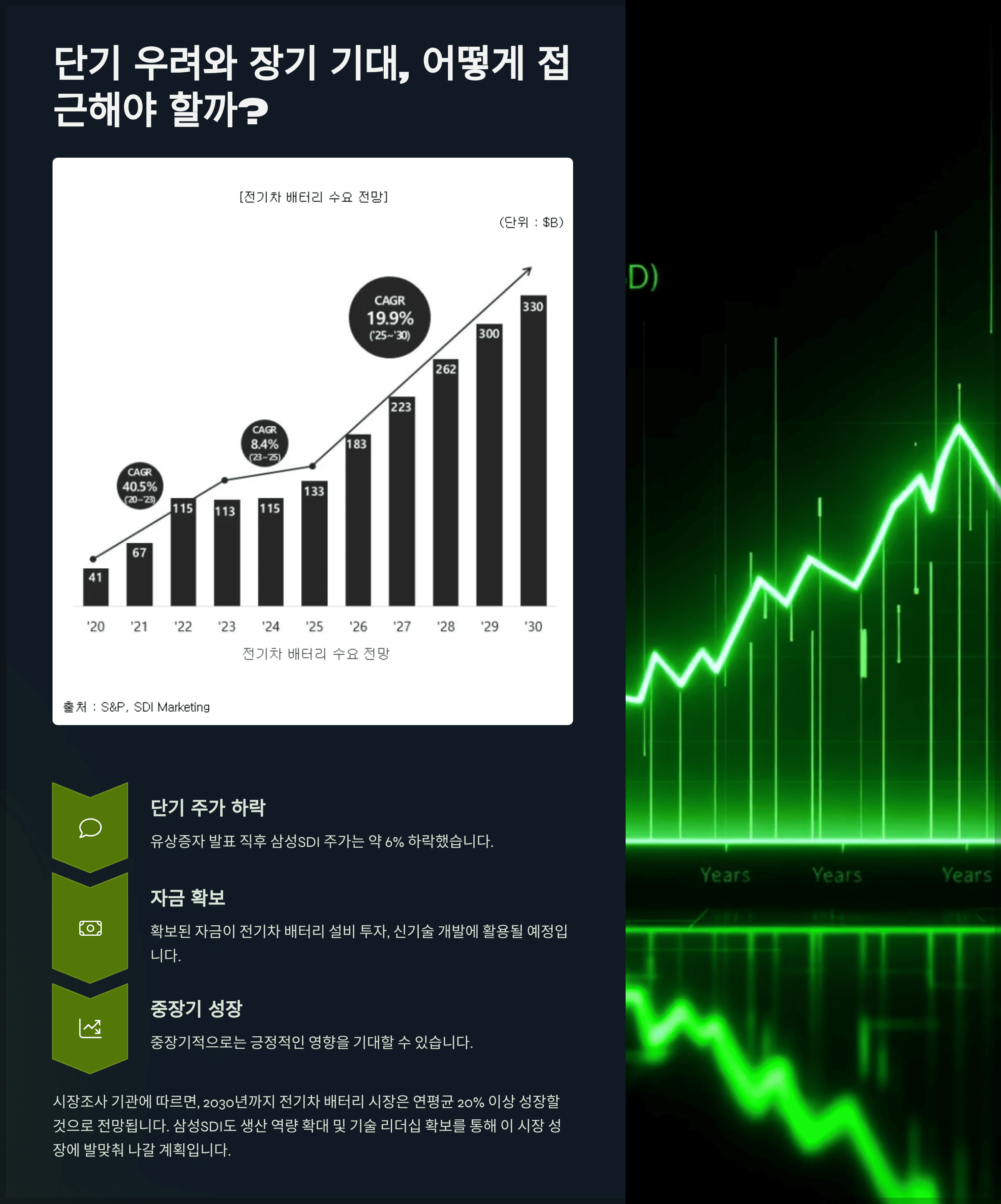 지금은 일시적인 주가 변동에 흔들리기보다는, 삼성 SDI가 만들어갈 성장 스토리에 집중할 때입니다.