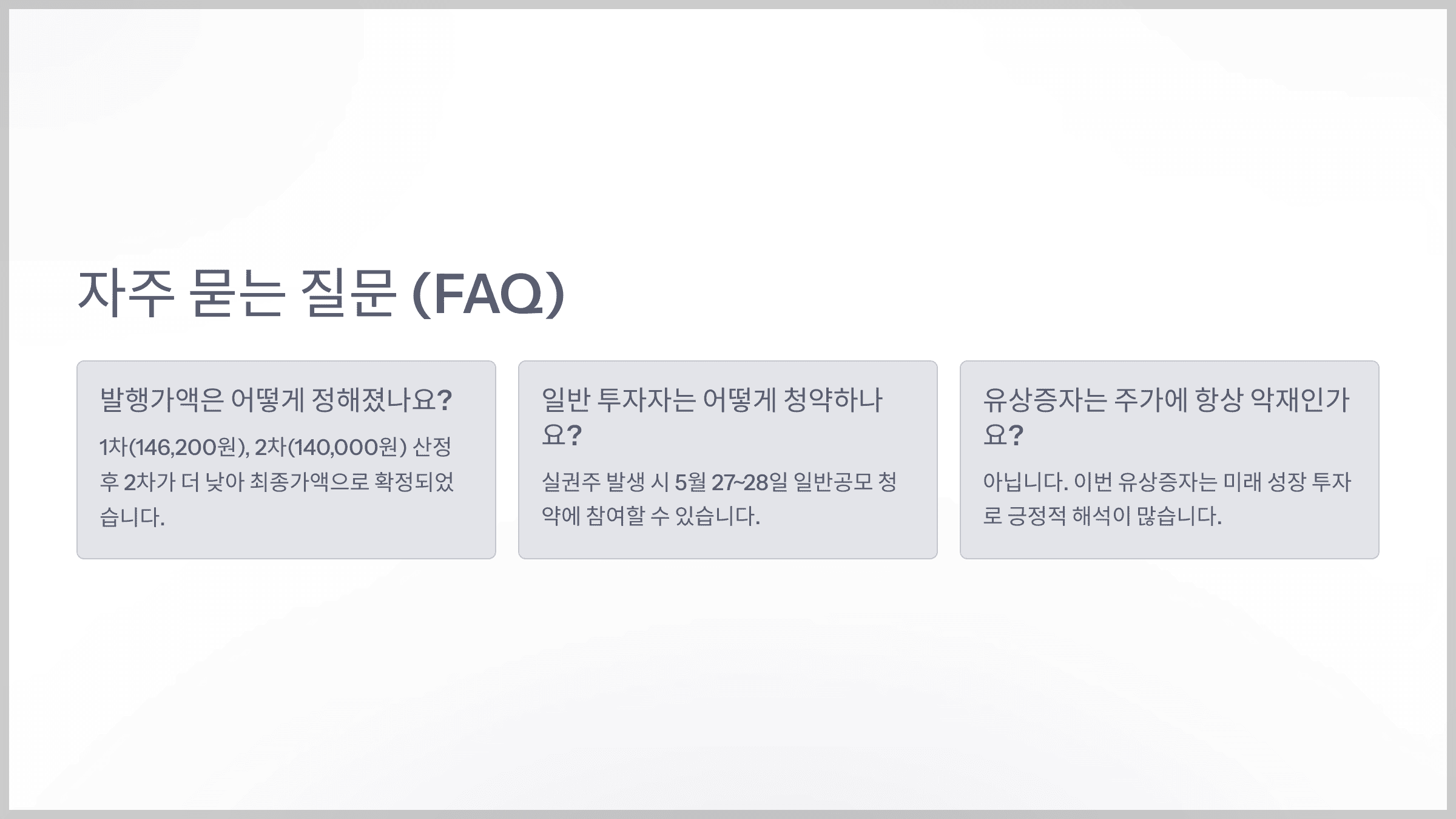 | 발행가액 확정일 | 2025.05.16 | 최종 확정가 140,000원 |