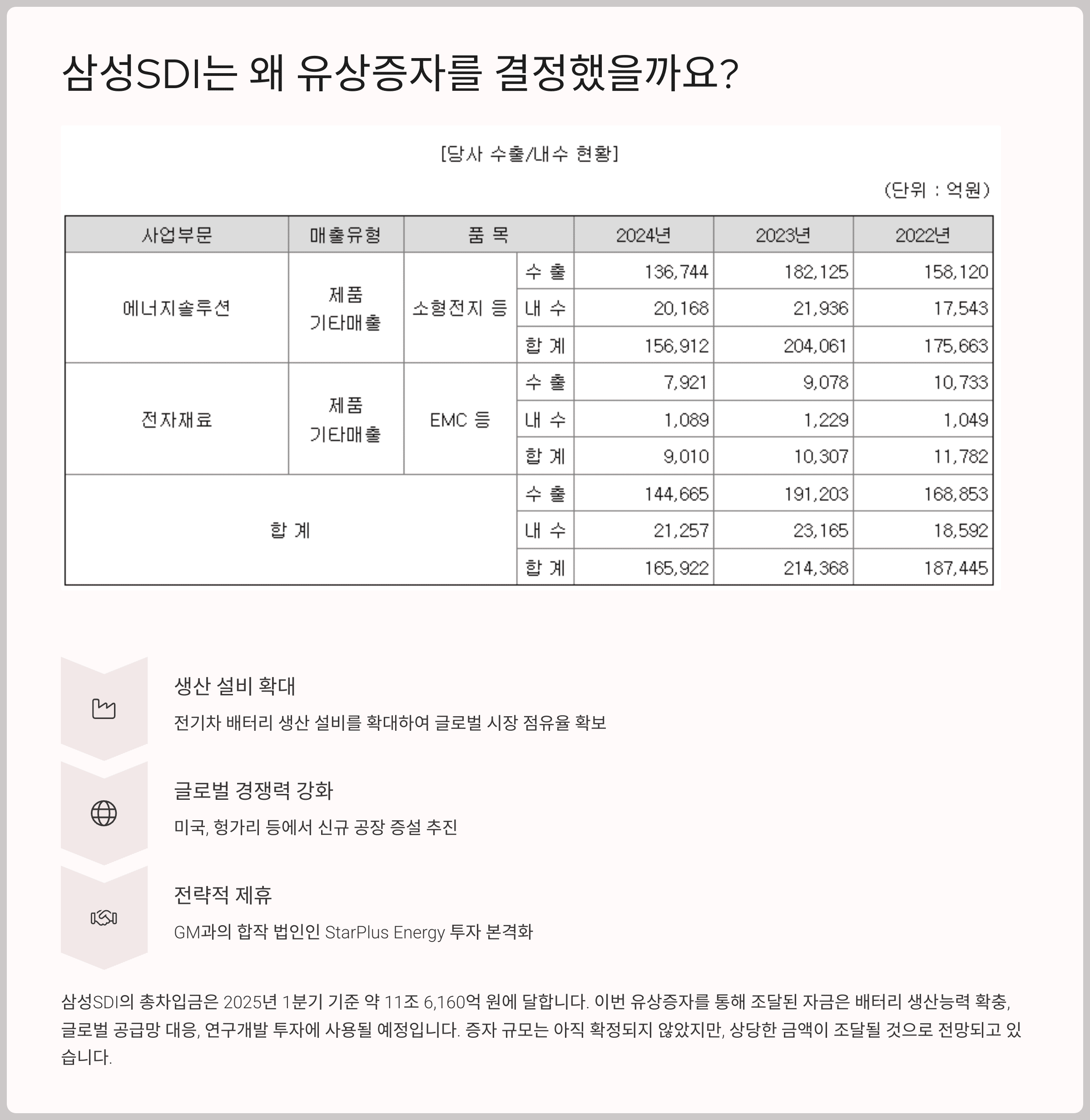 🔍 1. 삼성SDI는 왜 유상증자를 결정했을까요?