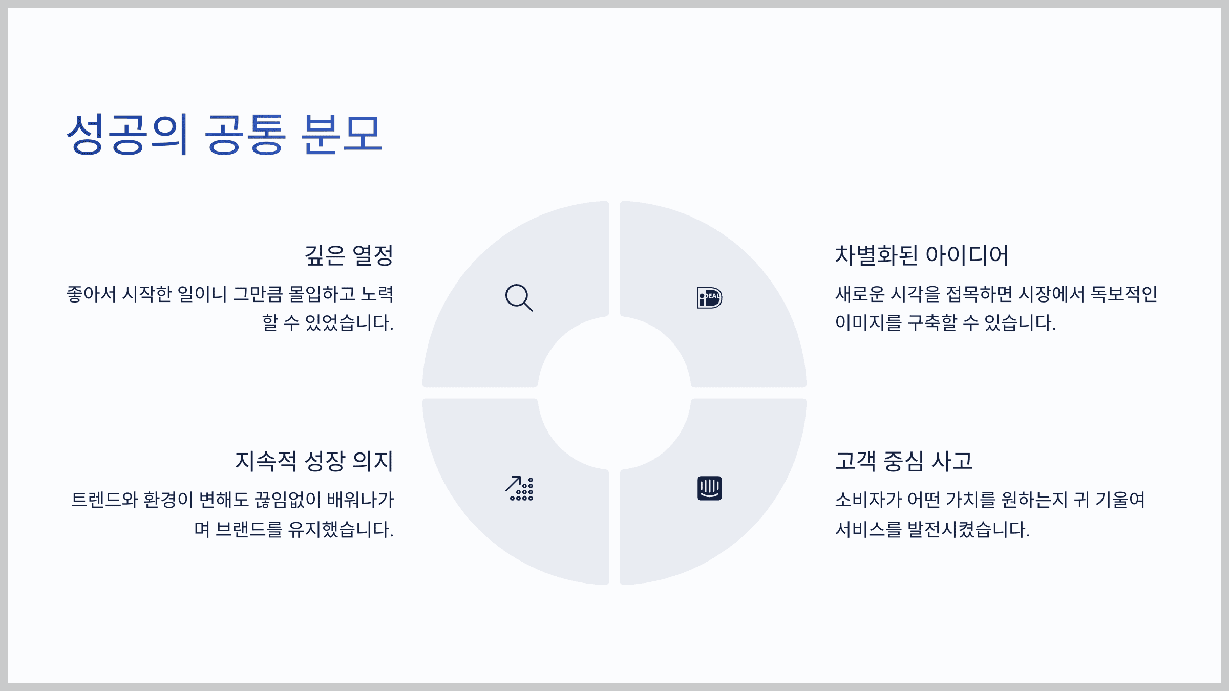 성공의 공통분모: 열정, 차별화, 고객 중심