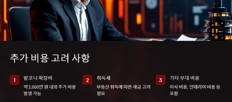 ✅ 추가 비용 고려: 발코니 확장비 및 취득세 등 포함한 총비용 계산