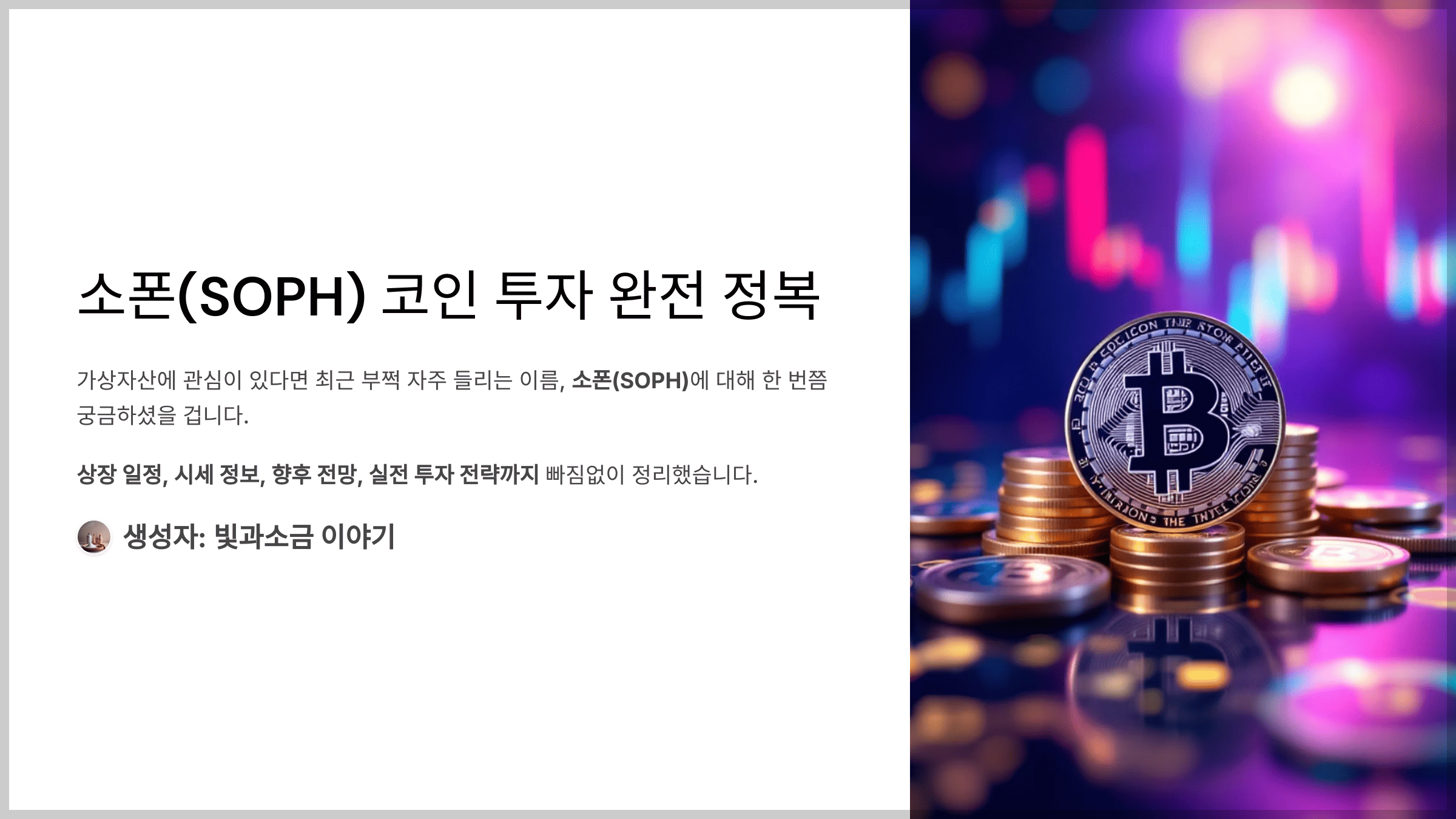소폰(SOPH) 코인 투자 완전 정복, 상장 정보부터 시세 전망까지입니다. 가상자산에 관심이 있다면 최근 부쩍 자주 들리는 이름, 소폰(SOPH)에 대해 한 번쯤 궁금하셨을 겁니다.