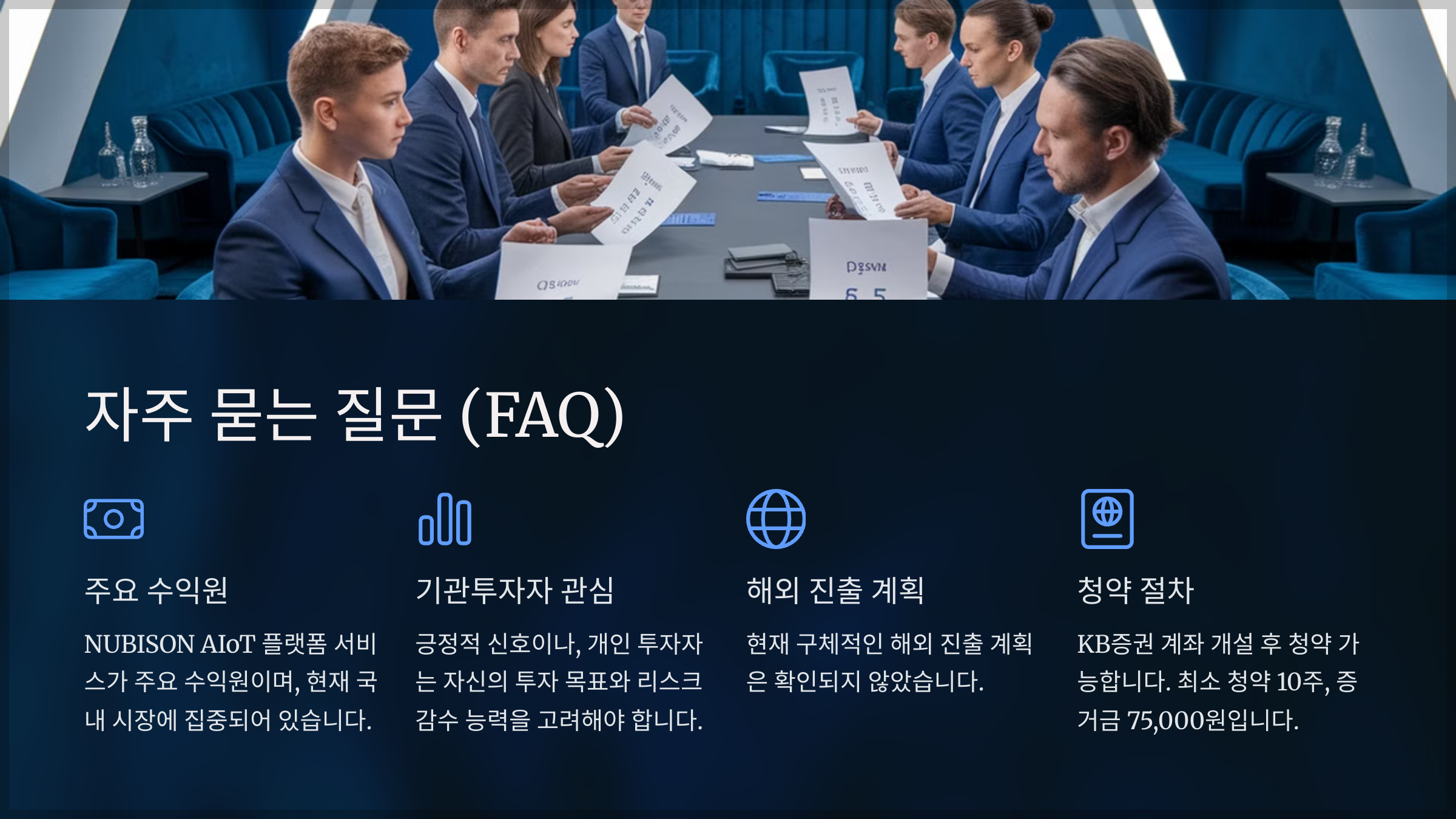 👉 NUBISON AIoT 플랫폼 서비스가 주요 수익원이며, 현재 국내 시장에 집중돼 있다.