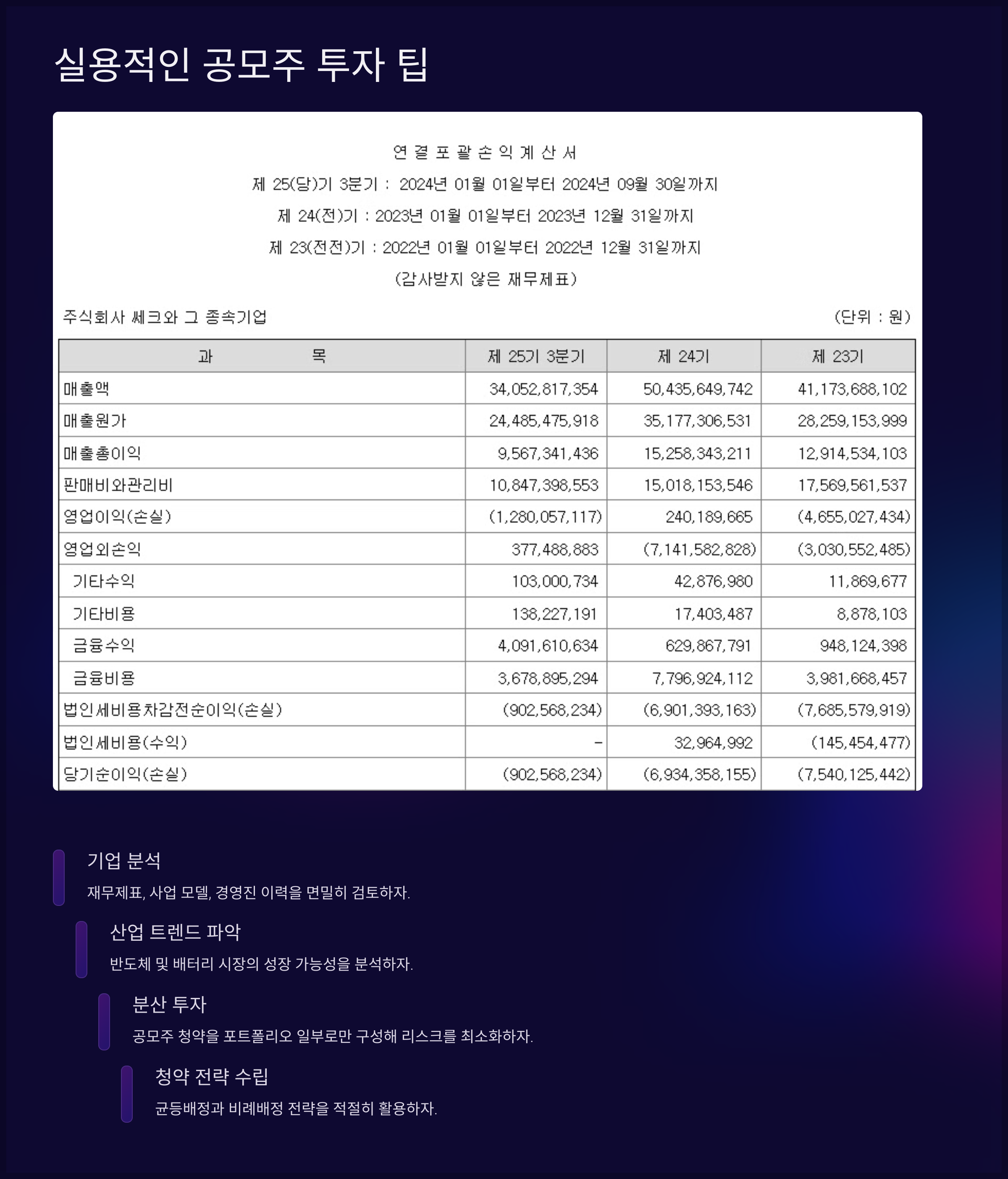 ✔ 분산 투자: 공모주 청약을 포트폴리오 일부로만 구성해 리스크를 최소화하자.