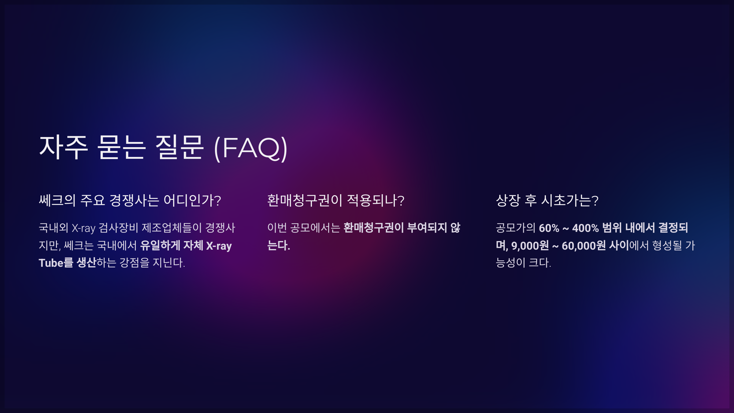 ✔ 재무 리스크 고려 및 공모가 적정성 분석 필요