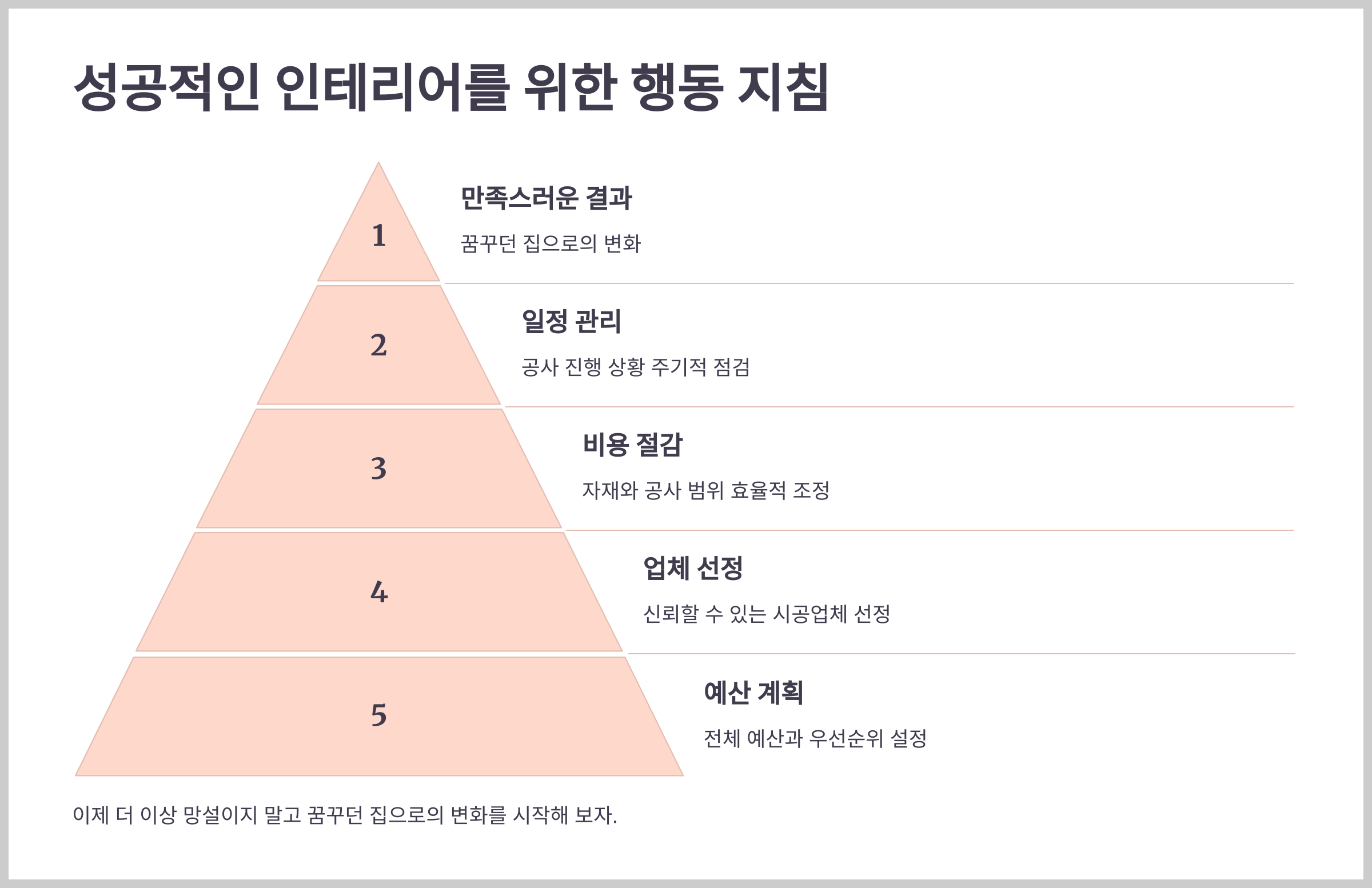 👉 예산이 부족하다면 주방이나 욕실처럼 자주 사용하는 공간에 우선순위를 두고 진행하면 효과적이다.