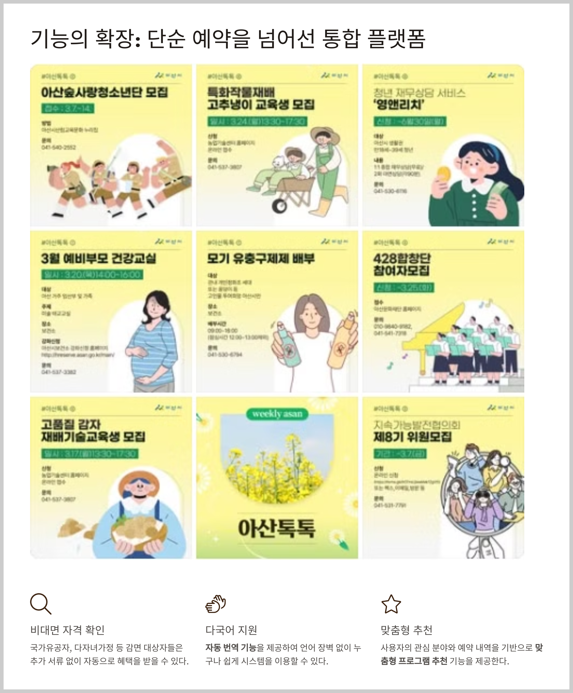 통합예약시스템은 단순한 예약 시스템이 아니라 시민 생활 전반에 도움을 주는 종합 플랫폼으로 발전하고 있다.