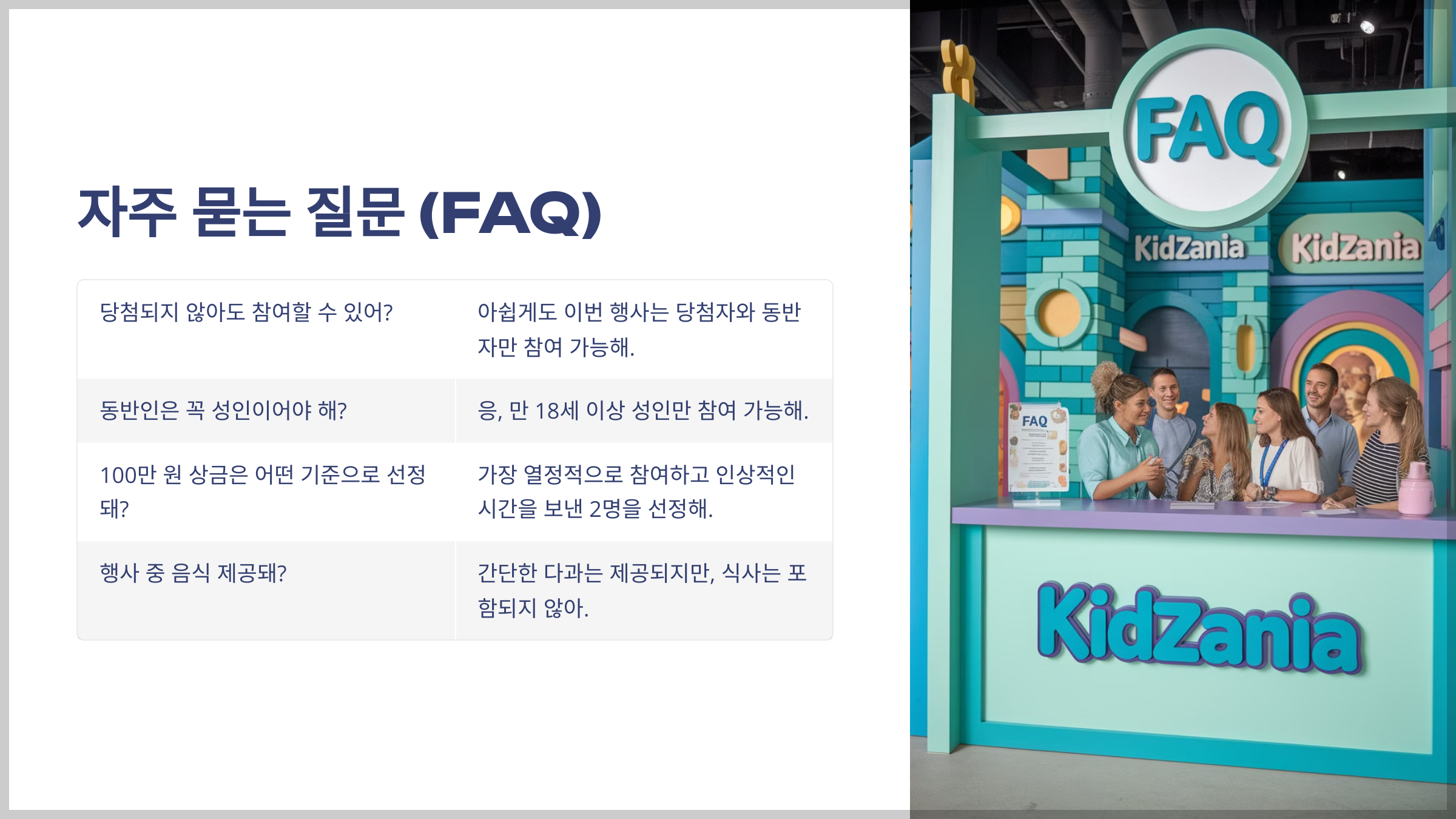 A: 아쉽게도 이번 행사는 당첨자와 동반자만 참여 가능해.