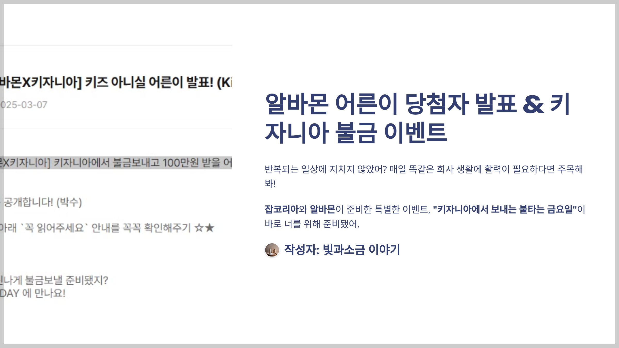 알바몬 어른이 당첨자 발표 & 키자니아 불금 이벤트 당첨자 바로 확인하기