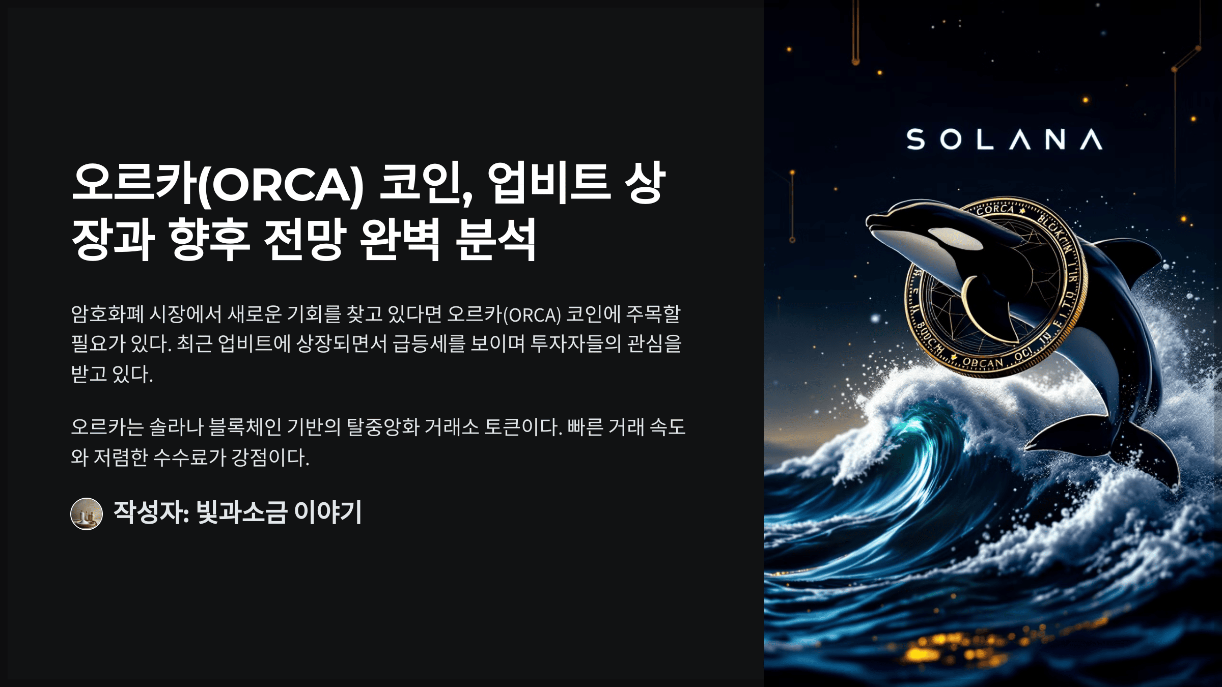 오르카는 솔라나(Solana) 블록체인 기반의 탈중앙화 거래소(DEX) 토큰으로, 빠른 거래 속도와 저렴한 수수료라는 강점을 지니고 있다. 이번 글에서는 오르카 코인의 기본 정보부터 업비트 상장 소식, 현재 시세와 장기 전망, 그리고 투자 시 주의해야 할 사항까지 깊이 있게 다뤄 보겠다.
