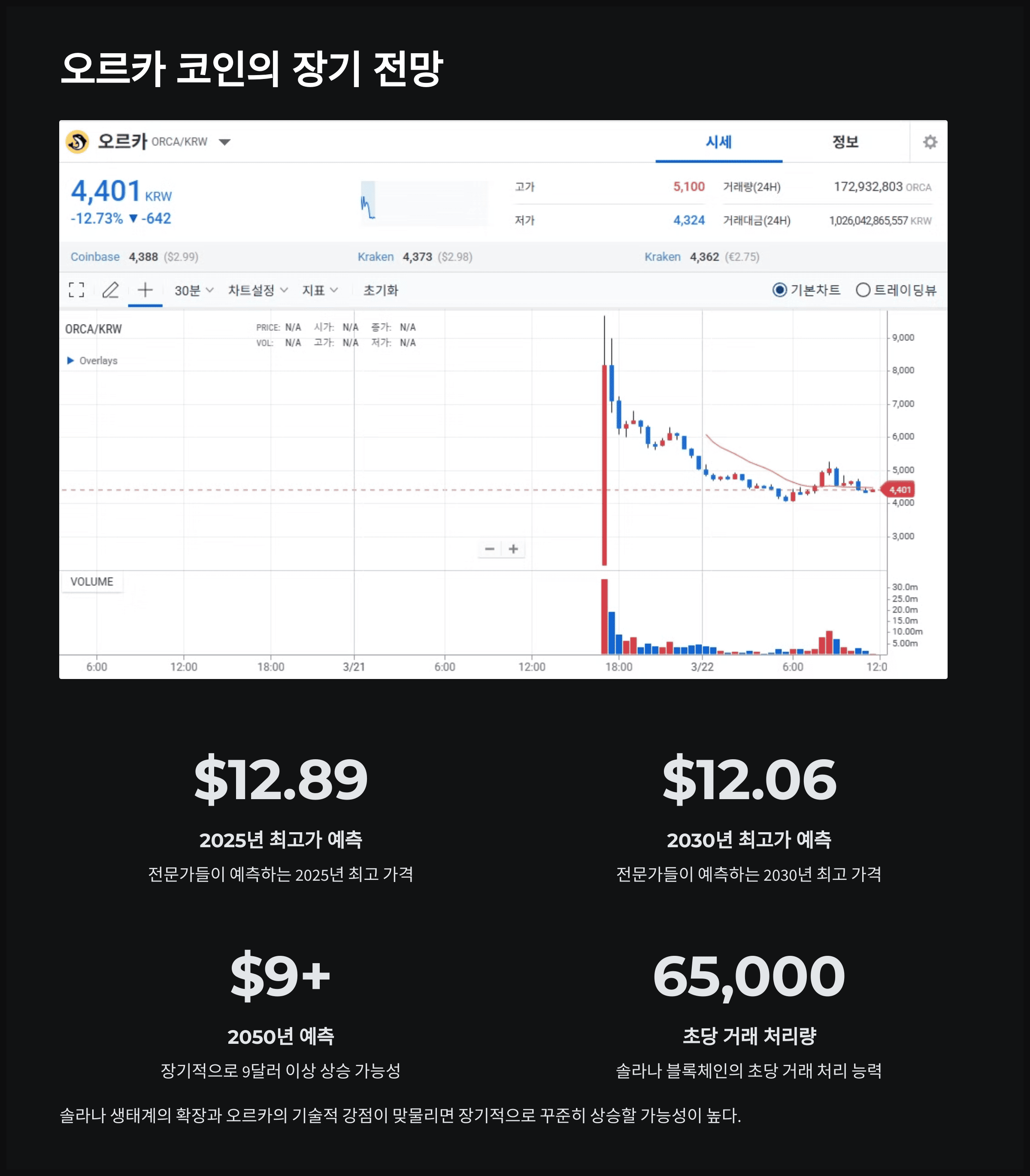 솔라나 생태계의 확장과 오르카의 기술적 강점이 맞물리면 장기적으로 꾸준히 상승할 가능성이 높다.