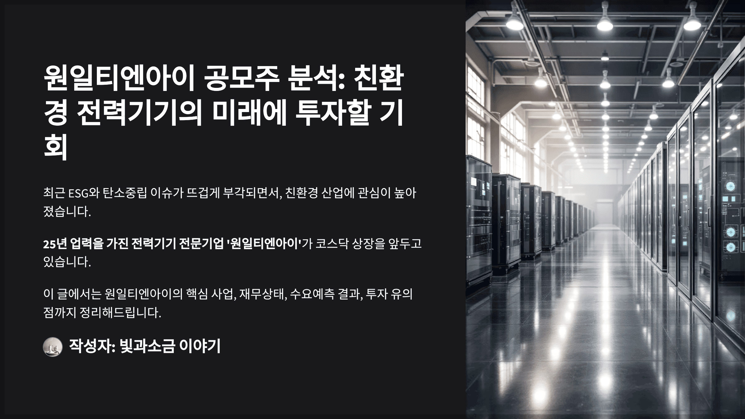 원일티엔아이 공모주 분석: 친환경 전력기기의 미래에 투자할 기회입니다. 최근 ESG와 탄소중립 이슈가 뜨겁게 부각되면서, 친환경 산업에 관심이 높아졌습니다. 하지만 ‘어떤 기업에 투자해야 할까’라는 고민은 여전히 남아있죠.