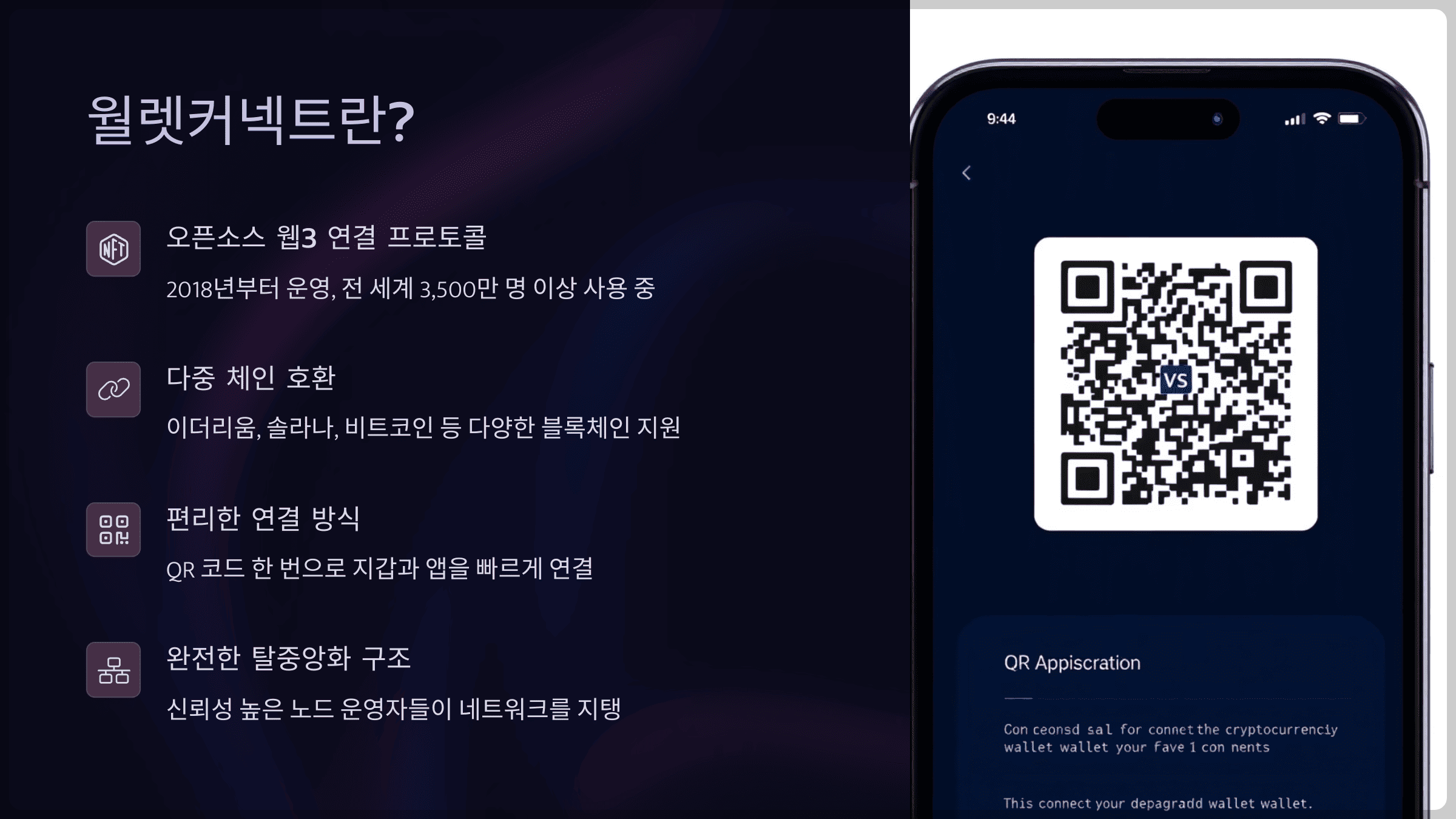 - 편리한 연결 방식: QR 코드 한 번으로 지갑과 앱을 빠르게 연결