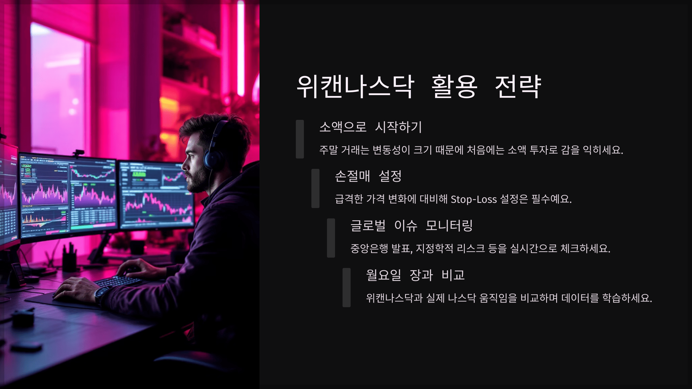 주말에도 글로벌 뉴스에 귀 기울이고, 위캔나스닥의 흐름을 분석하세요.