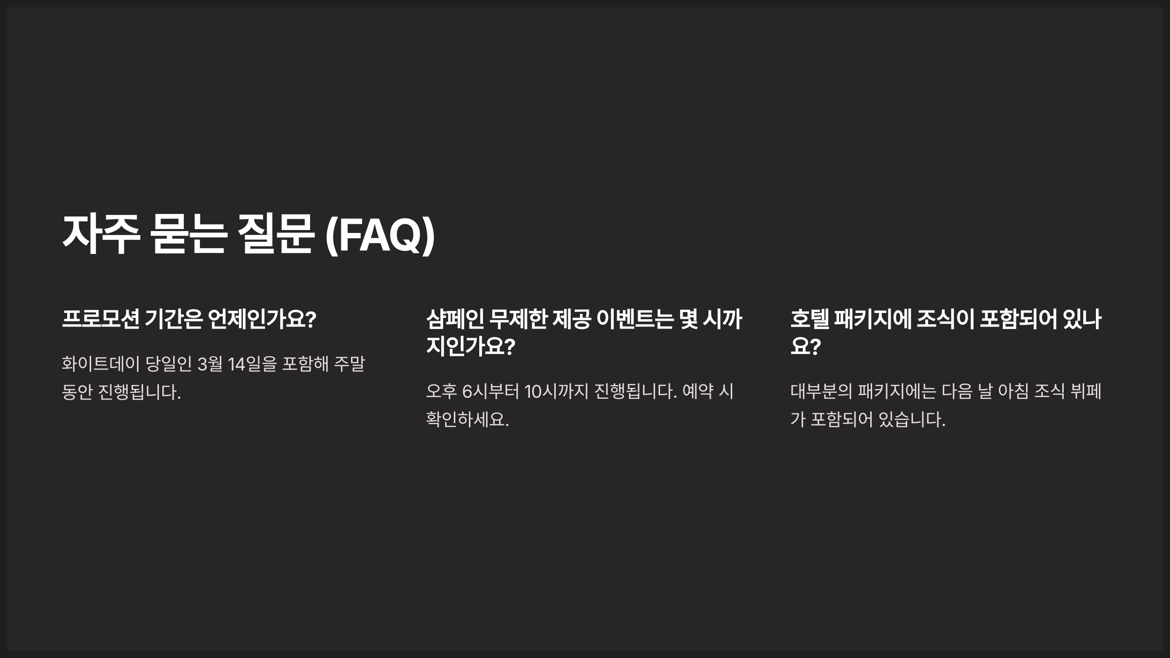 윈덤 그랜드 부산, 화이트데이 특별 프로모션, 로맨틱한 밤의 완성입니다. 특별한 화이트데이를 계획하고 있다면 윈덤 그랜드 부산에서 선보이는 화이트데이 프로모션이 완벽한 해답이 될 것이다.