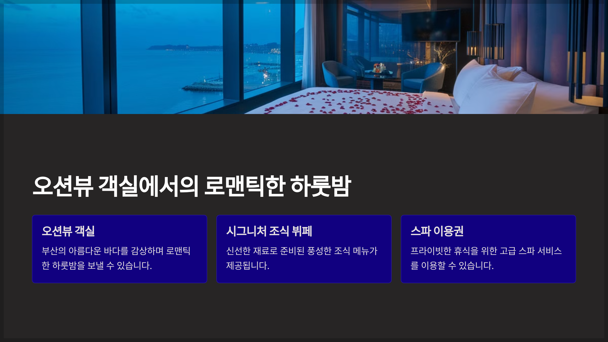 ✔️ 오션뷰 객실 – 부산의 아름다운 바다를 감상하며 로맨틱한 하룻밤