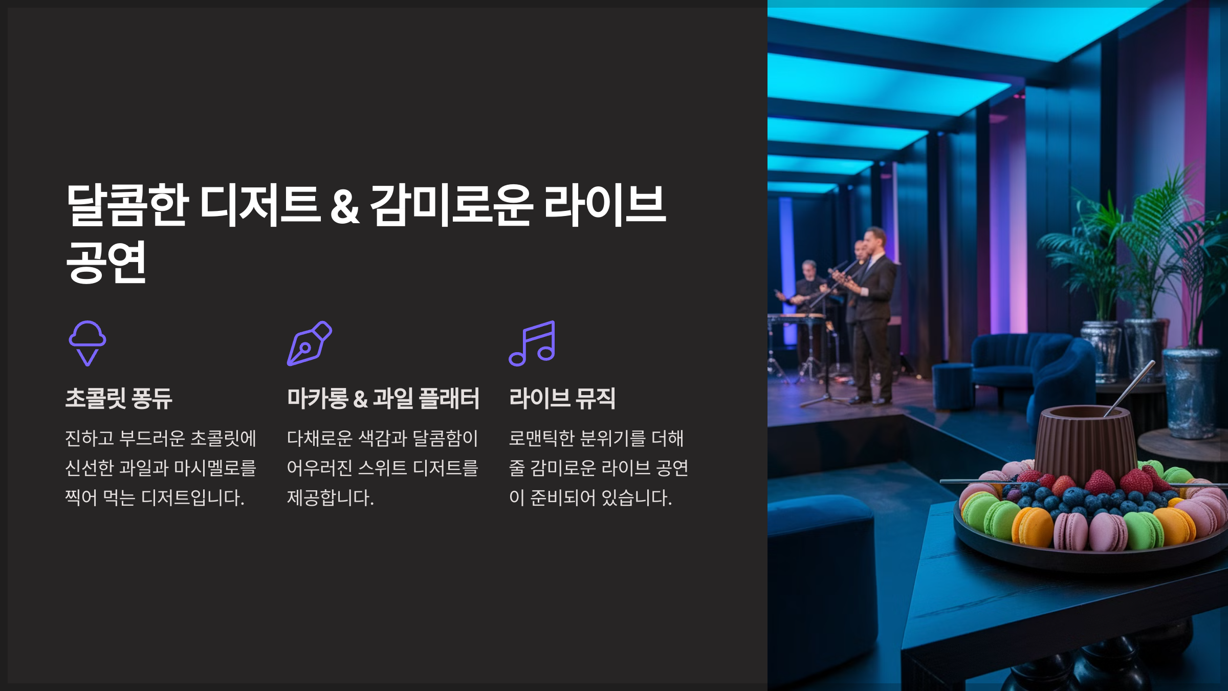 🍫 달콤한 디저트 & 감미로운 라이브 공연