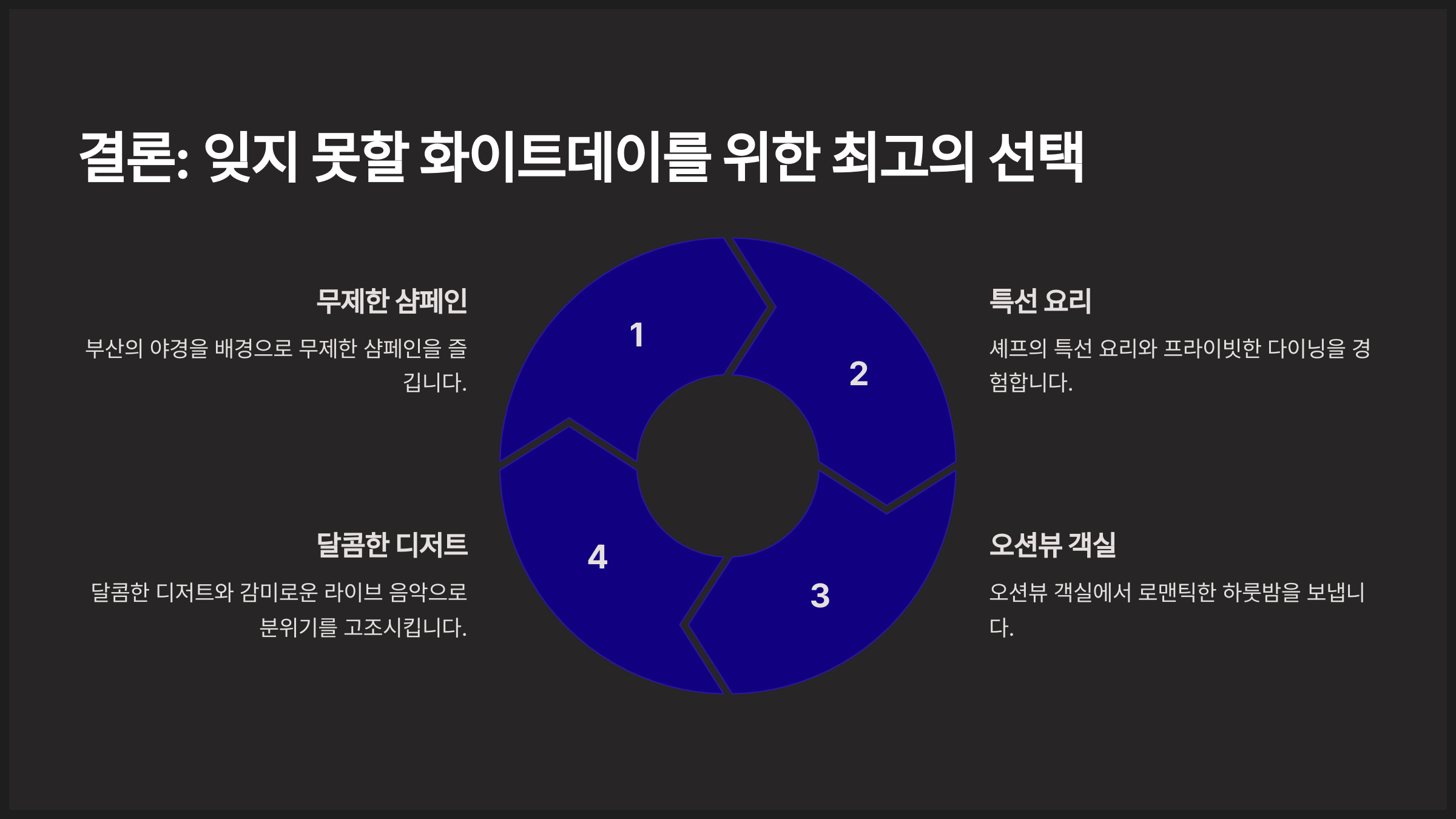 - 포인트: 부산의 아름다운 야경과 함께하는 무제한 샴페인