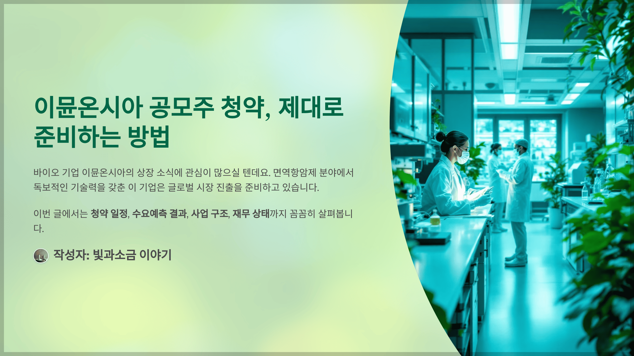 이뮨온시아 공모주 청약, 수요예측 결과 제대로 준비하는 방법입니다. 바이오 기업 이뮨온시아의 상장 소식에 관심이 많으실 텐데요. 면역항암제 분야에서 독보적인 기술력을 갖춘 이 기업은, 글로벌 시장 진출을 준비하며 본격적인 성장 궤도에 오르고 있습니다.