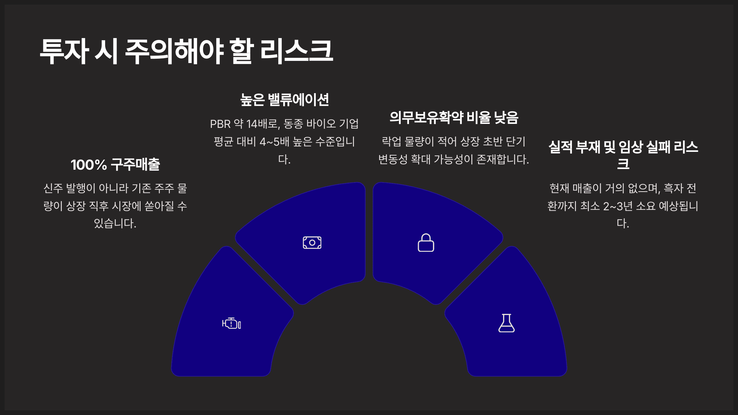 신주 발행이 아니기 때문에, 기존 주주 물량이 상장 직후 시장에 쏟아질 수 있습니다.