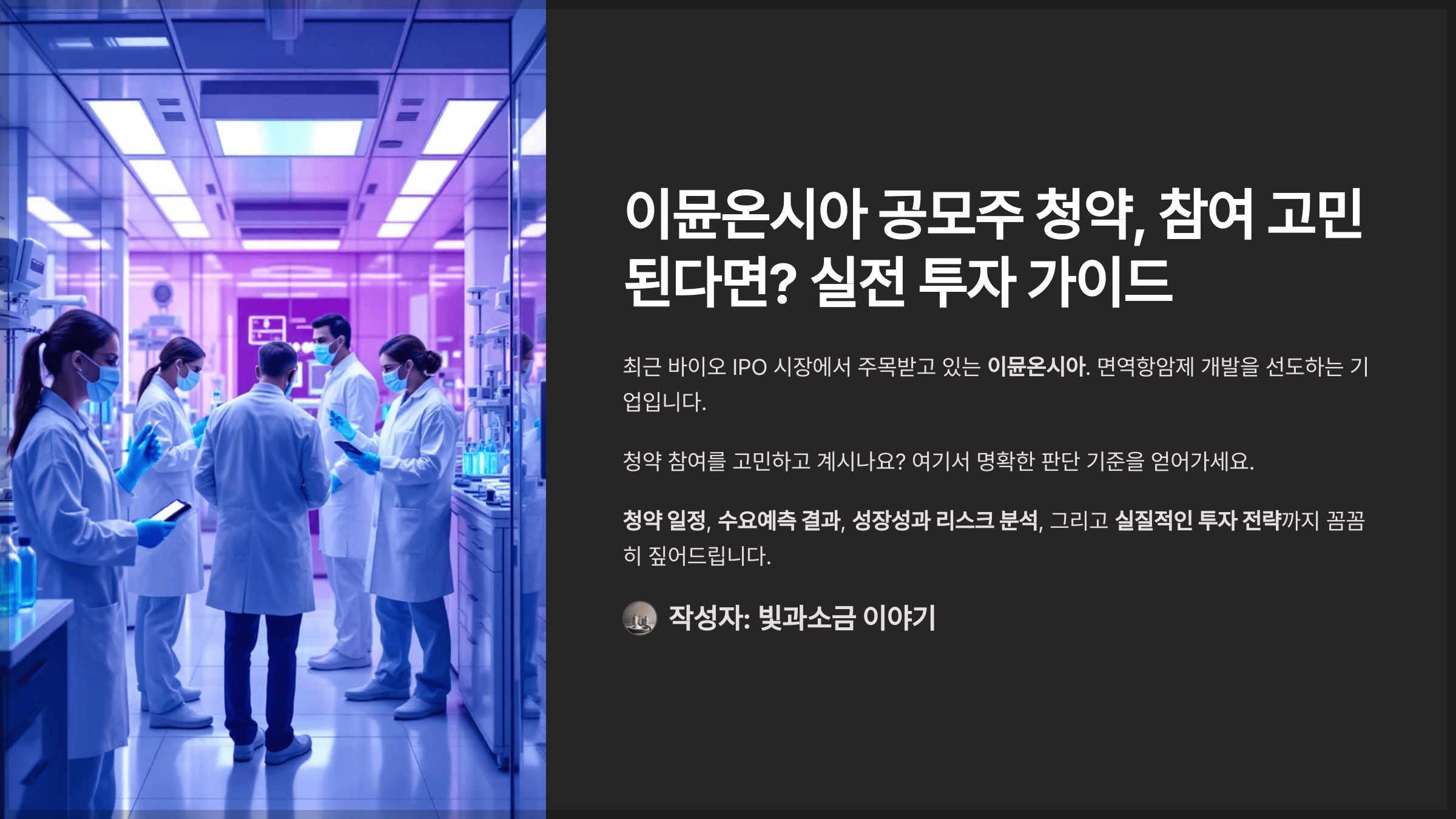 이뮨온시아 공모주 청약, 참여 고민 된다면? 실전 투자 가이드입니다. 최근 바이오 IPO 시장에서 주목받고 있는 이뮨온시아. 특히 면역항암제 개발을 선도하는 기업으로서 공모주 청약을 준비하고 있습니다.