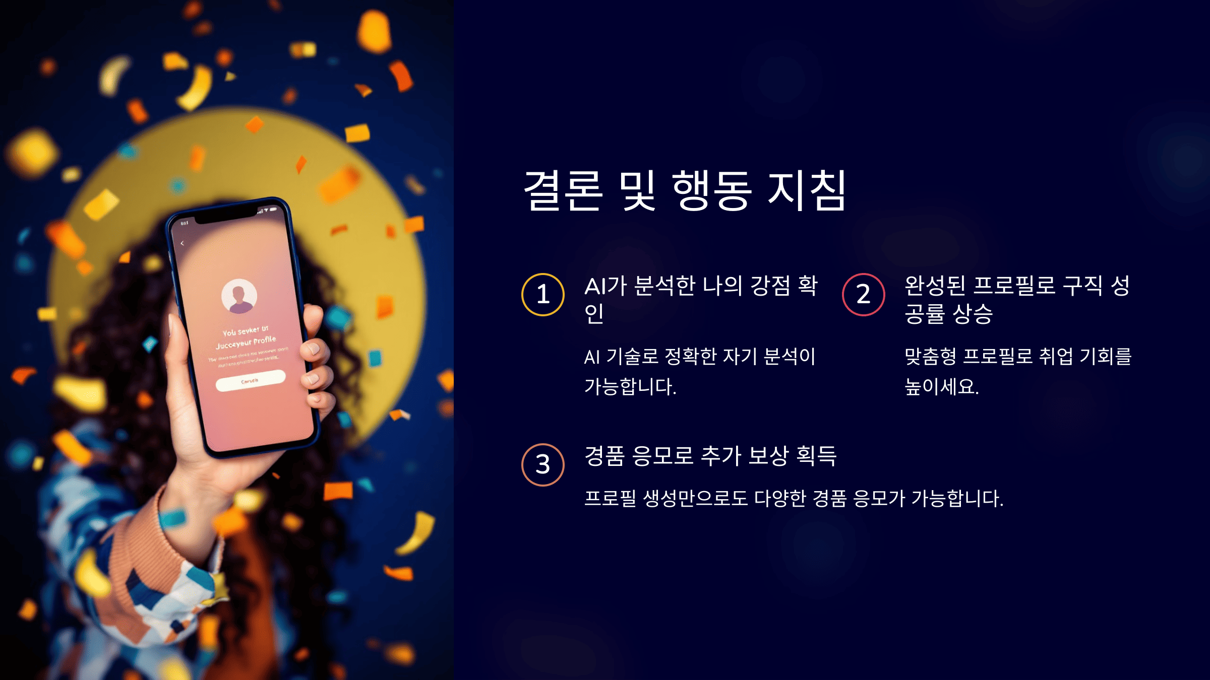 AI가 강점을 정확히 분석해 맞춤형 프로필을 완성하고, 이를 통해 구직 성공률을 높일 수 있습니다.