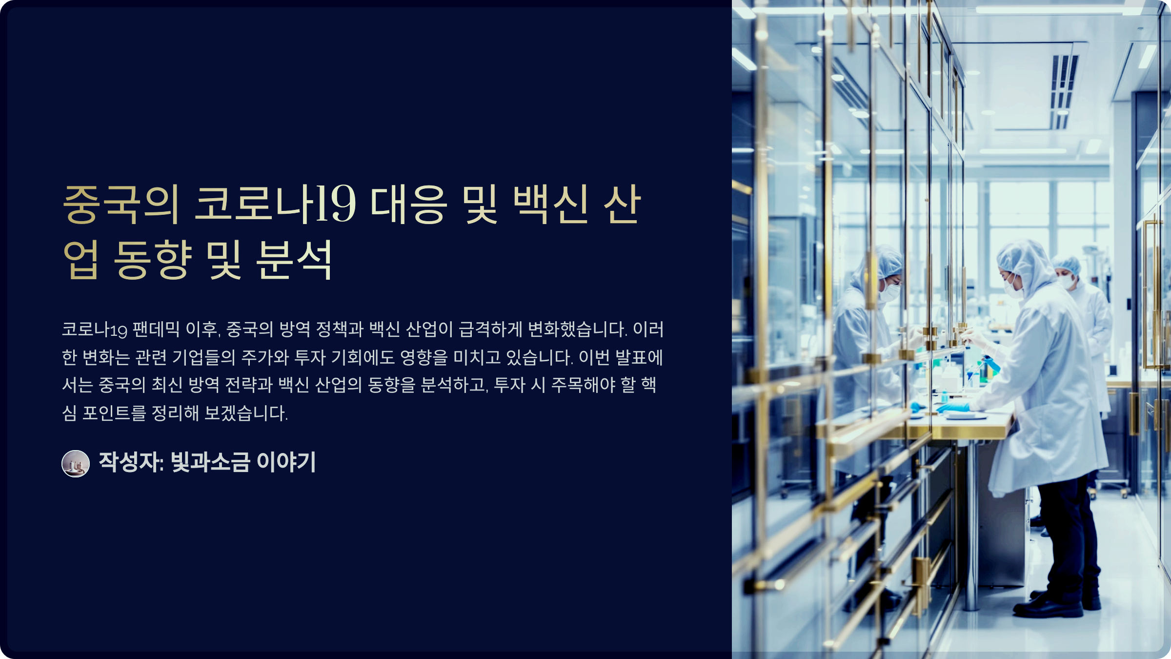 중국의 코로나19 대응 및 백신 산업 동향 및 분석입니다. 코로나19 팬데믹 이후, 중국의 방역 정책과 백신 산업이 급격하게 변화했다. 이러한 변화는 관련 기업들의 주가와 투자 기회에도 영향을 미치고 있다. 이번 글에서는 중국의 최신 방역 전략과 백신 산업의 동향을 분석하고, 투자 시 주목해야 할 핵심 포인트를 정리해 보겠다.