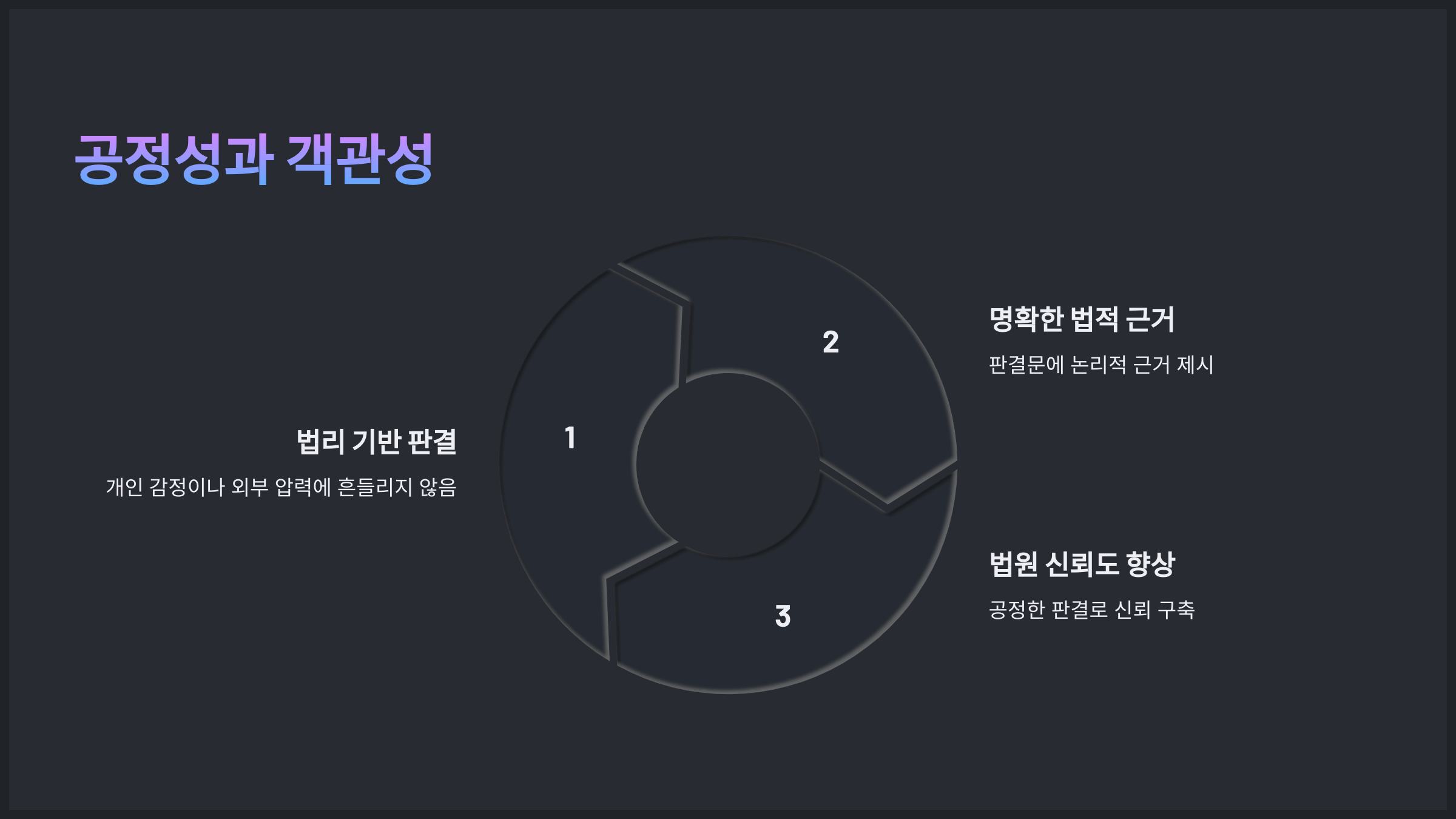 - 개인적인 감정이나 외부의 압력에 흔들리지 않고 오로지 법리에 기반한 판결을 내리는 것으로 유명합니다.