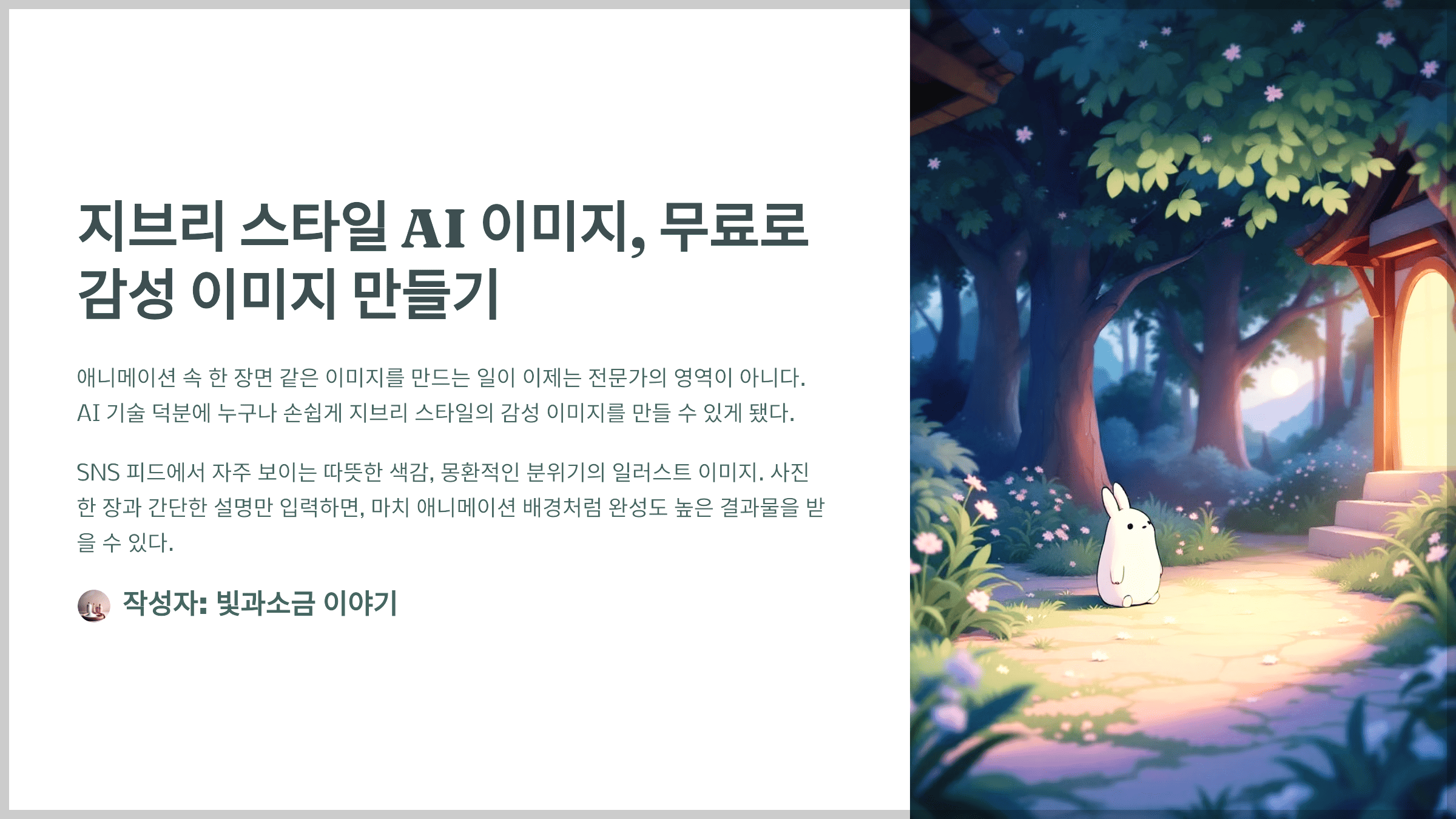 지브리 스타일 AI 이미지는 창의성과 감성을 쉽게 표현할 수 있는 강력한 도구다.