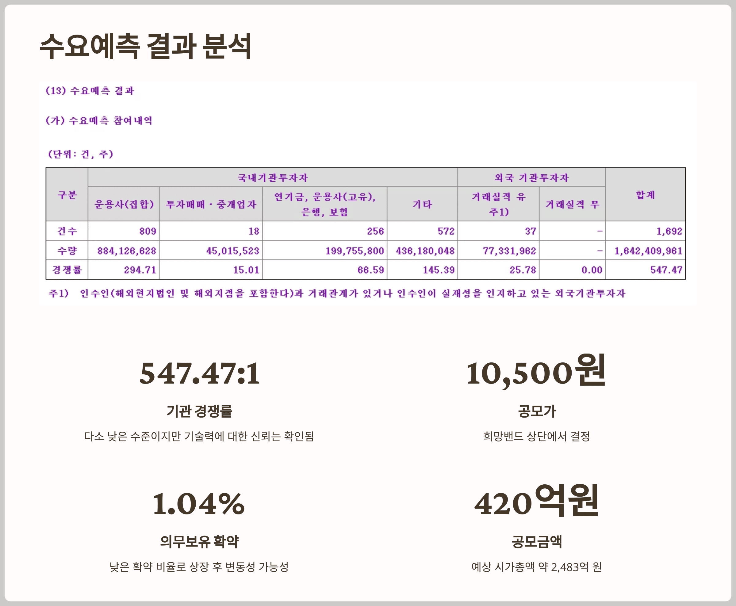- 의무보유 확약 비율: 1.04%로 낮은 수준