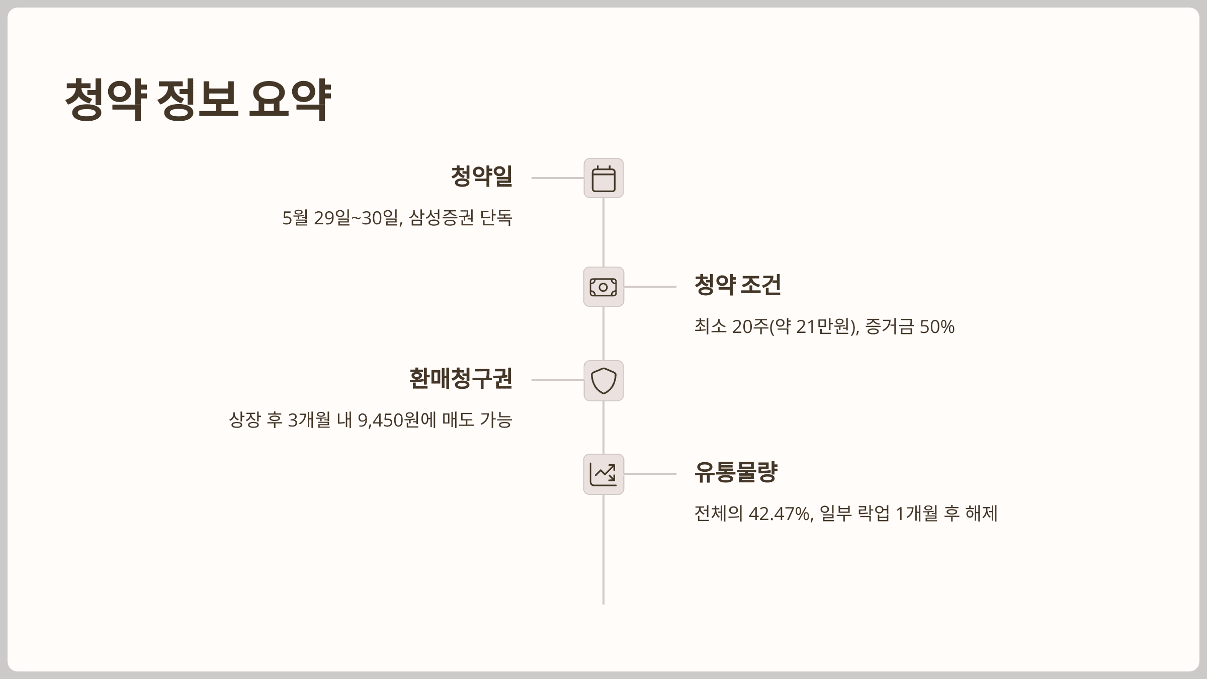 - 최소 청약 수량: 20주 (약 21만 원)