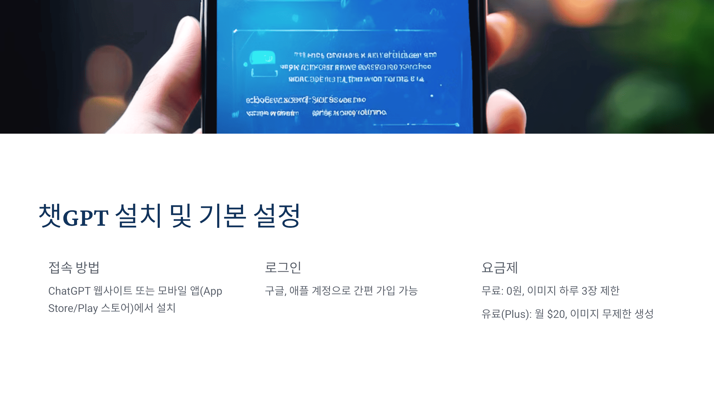 | 유료 (Plus) | 월 $20 (약 27,000원) | GPT-4 사용, 이미지 무제한 생성, 빠른 속도 |