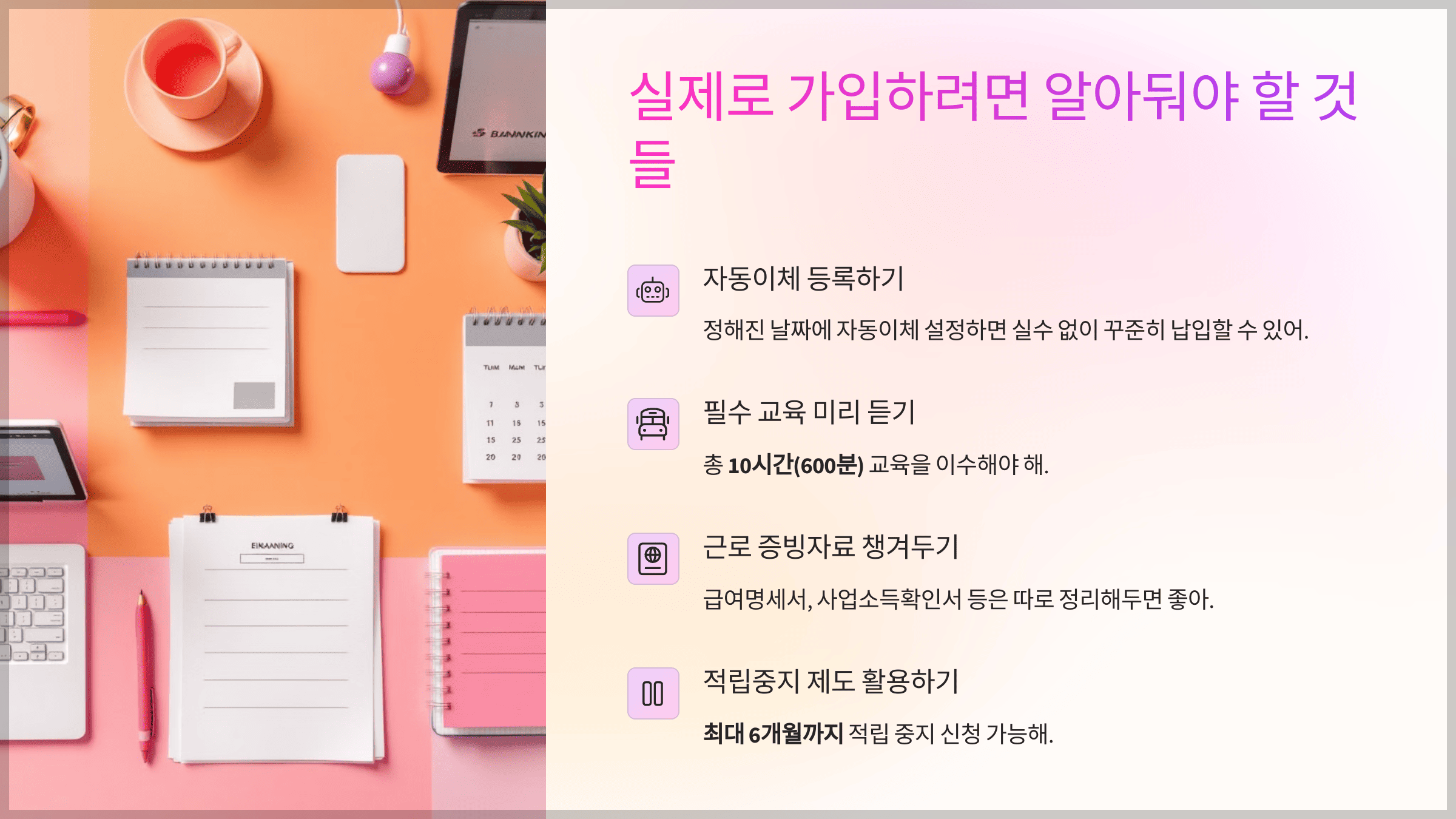 - 대상: 직장인, 아르바이트, 프리랜서, 자영업자, 군인, 공무원 등