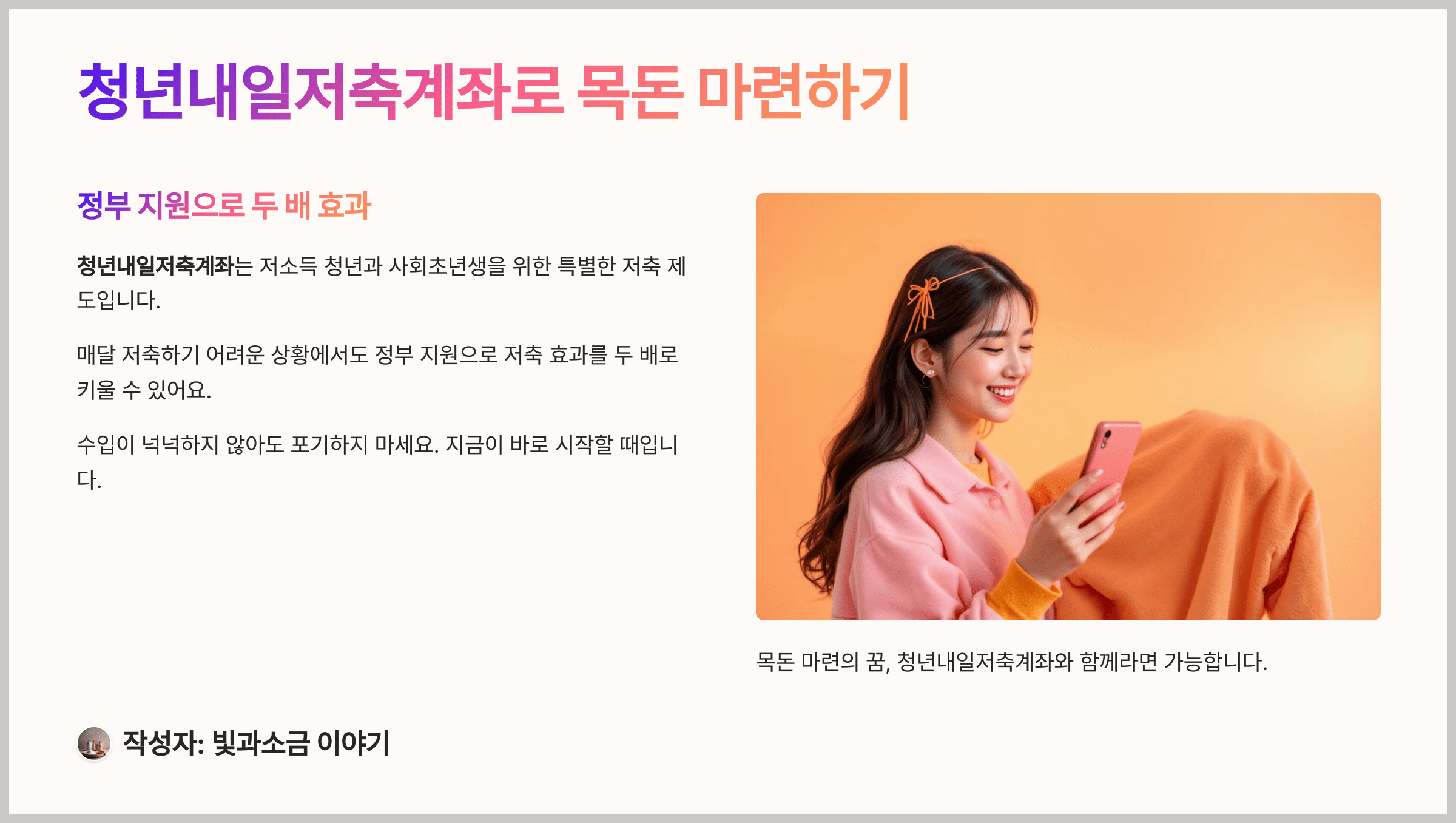 지금부터 청년내일저축계좌가 어떤 제도인지, 왜 지금 시작해야 하는지 하나씩 알아보겠습니다.