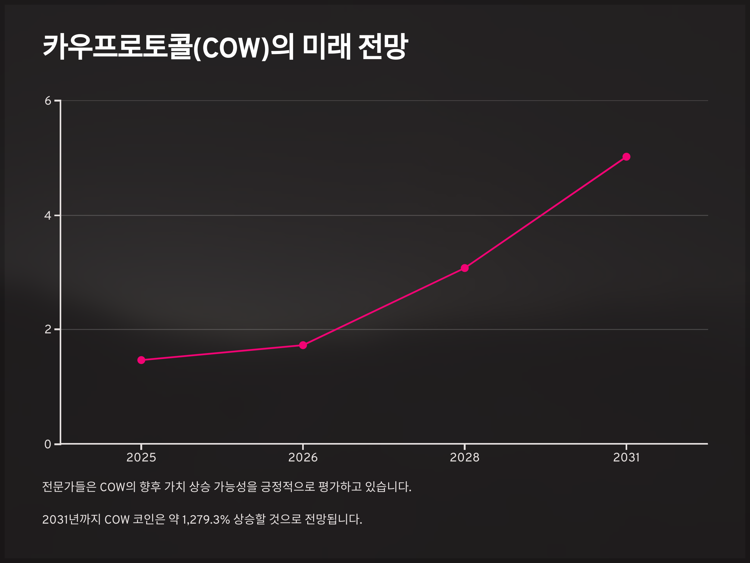 전문가들은 COW의 향후 가치 상승 가능성을 긍정적으로 평가하고 있다. 연도별 예상 가격 변동을 살펴보자.