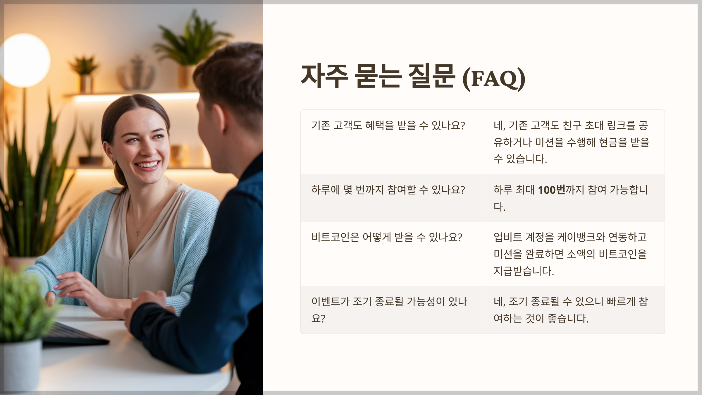 👉 네, 기존 고객도 친구 초대 링크를 공유하거나 미션을 수행해 현금을 받을 수 있다.