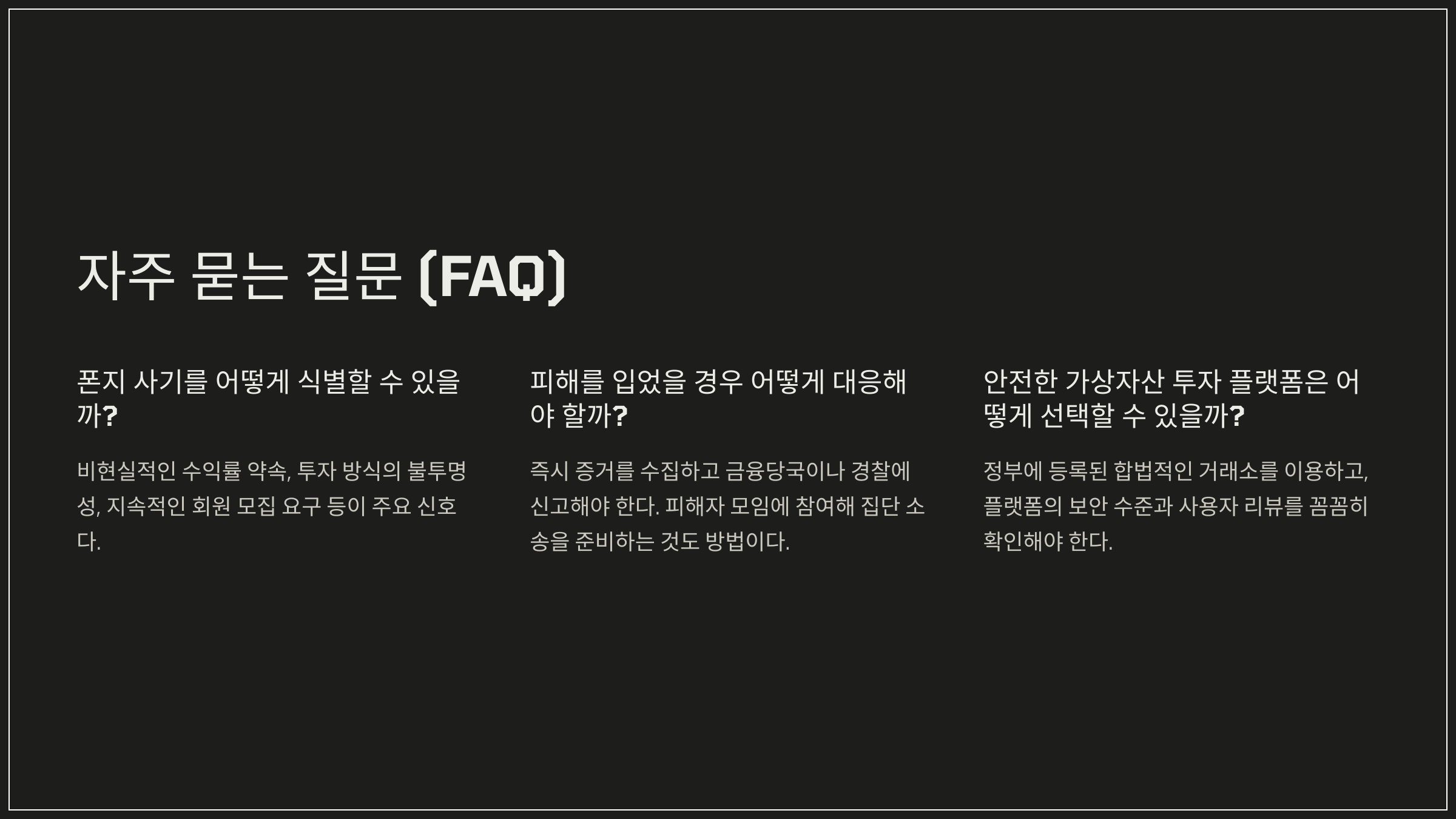 - 투자자 보호 및 사기 방지를 위한 법적 장치 마련