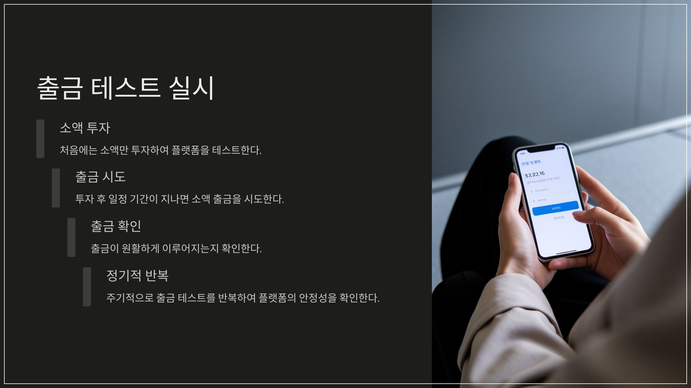 → 초기에는 소액 출금이 원활했지만, 점차 출금이 막히며 문제가 드러났다.