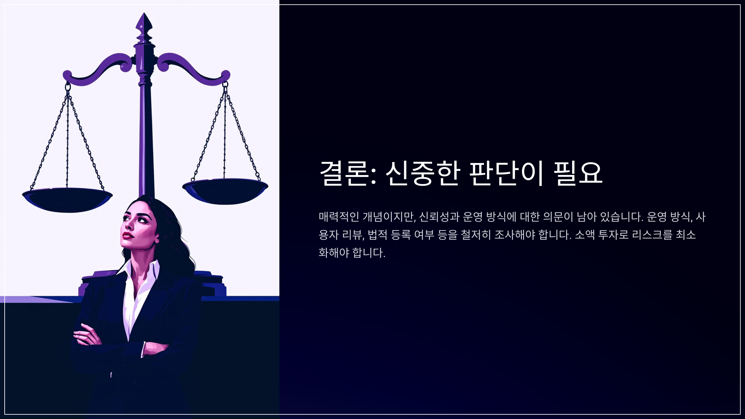 높은 수익률의 유혹에 빠지기 전에, 운영 방식, 사용자 리뷰, 법적 등록 여부 등을 철저히 조사해야 한다.